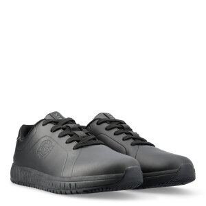 Arbetssko designad som en sneaker. Lätt, slitstark och bekväm. Av vattenavvisande fullnarvläder som andas. Med svettransporterande innerfoder. Extra halkhämmande, flexibel och stötabsorberande yttersula som ger bra fäste på hala underlag. Med stabiliserande gelänk som minskar risken för vrickskador. Inläggssulan andas, är mjuk och svettransporterande. Skorna är PVC-fria, metallfria och ESD-godkända. Perfekt som kockskor.