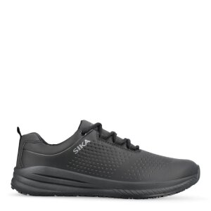 Sneakersliknande arbetsskor med skosnören – perfekta för servitörer och annan kökspersonal. Den släta ovandelen i mikrofiber med några få, snygga detaljer gör skon särskilt motståndskraftig mot smuts och damm och har samtidigt en avvisande effekt mot vatten och andra vätskor. Yttersulan består av den innovativa teknologin SIKA HexaGrip. Sulan är tillverkad av slitstarkt gummi, och sulmönstret består av många hexagoner som bidrar till 360° halksäkerhet och enkelt avleder vätska från sulan, så att skon står stadigare på underlaget inomhus. Mjuk mellansula av EVA-skum gör skon flexibel, lätt och särskilt stötabsorberande. Luftbubblor i både mellan- och yttersula, SIKA BubbleTech, säkerställer särskilt god stötabsorbering och skickar tillbaka energin från varje steg och ger tillräckligt med energi för hela arbetsdagen. Arbetsskorna är metallfria, PVC-fria och ESD-godkända.
