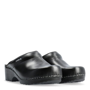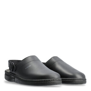 Pantolette med vändbar och justerbar hälrem. Av vattenavvisande läder som andas. Mjuk innersula av mocka. Halkhämmande PU-yttersula. OB+A+E+FO+SRC.