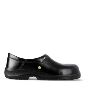 Superlätt och bekväm mjuktoffel med häl av slitstarkt Permair® läder som andas. Extra halkhämmande och stötabsorberande yttersula. Sulkonstruktionen säkerställer stabilitet och minimerar risken för vrickskador. Med utbytbar inläggssula i svettransporterande och antibakteriellt material som andas - kan tvättas i 30 °C. Innerfoder av svettabsorberande, slitstarkt och snabbtorkande Politex som andas. Finns i svart och vit. ESD-godkänd.