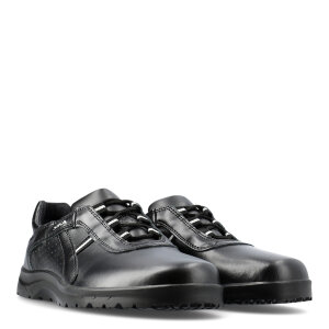 Superlätt och bekväm snörsko av slitstarkt Permair® läder som andas. Extra halkhämmande och stötabsorberande yttersula. Sulkonstruktionen säkerställer stabilitet och minimerar risken för vrickskador. Inläggssulan är antibakteriell, svetttransporterande och snabbtorkande. Innerfoder av svettabsorberande och slitstarkt mikrofiber som andas. Finns i svart och vit.