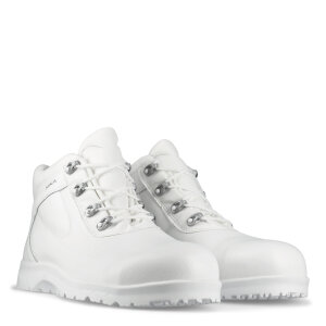 Lätt, bekväm och slitstark arbetssko särskilt framtagen för HORECA och köksmiljöer med hårda, våta och hala underlag. Yttersulan är extra halkhämmande och stötabsorberande. Skorna är tillverkade av slitstark och vattenavvisande mikrofiber som andas och är motståndskraftig mot kemikalier som används i rengöringsmedel. Innerfodret är av textil som andas med extra förstärkande mikrofiber i hälen. Stötabsorberande och svettransporterande inläggssula som andas. Skorna är enkla att rengöra och kan tvättas vid 40 °C