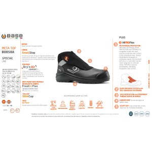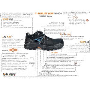 S7S HRO CI HI LG SC FO SR Ankle shoe, water resistant Nabutek leather; SmellStop lining, Fortrex puncture resistant patent + Dry'n Air footbed; SlimCap toe-cap; Fortrex sole Pu + Rubber