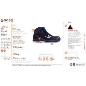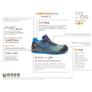 Base I-Cyber Shoe S1P ESD SRC Features Overcap for a higher abrasion resistance Padded collar for added comfort Air Tech