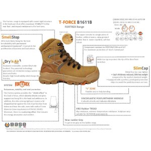 Water-resistant full grain leather; SmellStop lining; puncture-resistant Sole and SlimCap toe-cap;sole PU+HRO nitrile - Metel Free