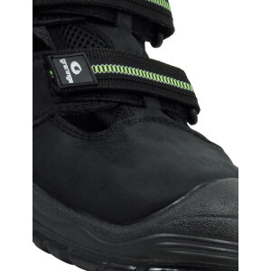 Skyddssandal, spiktrampskyddsmaterial stål, tåhättematerial komposit, mellansula i PU, plastgelänk, slitsula i PU, ovandelsmaterial nubuck