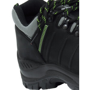 Skyddskänga, spiktrampskyddsmaterial stål, tåhättematerial komposit, mellansula i PU, plastgelänk, slitsula i nitril, ovandelsmaterial nubuck
