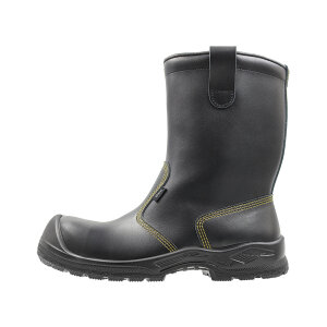 Stövlar med halvskaft av hållbar och vattenavstötande PU-belagt skinn. Dragöglorna i skaftets övre del underlättar när man drar på stövlarna. Foten skyddas med ett tåskydd av komposit och ett spiktrampskydd av stål. Den elastiska polyuretansulan ger bra grepp, samt tål olja och olika kemikalier. Den vida XL-lästen ger plats för tårna. ESD-godkänd.