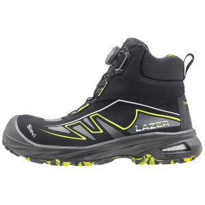 I skyddsskon Mustang Roller är foten skyddad med ett tåskydd av komposit och ett spiktrampskydd av stål. Skon är lätt att ta på och av sig tack vare snörningsmekanismen BOA® Fit System. Tvåskikts TPU/PU-sula säkerställer en utmärkt slitstyrka och optimal flexibilitet. Ovandelen är av hållbart PU-skinn. 3D-dry®-fodret förbättrar andningsegenskaperna. Antistatisk och ESD-godkänd.