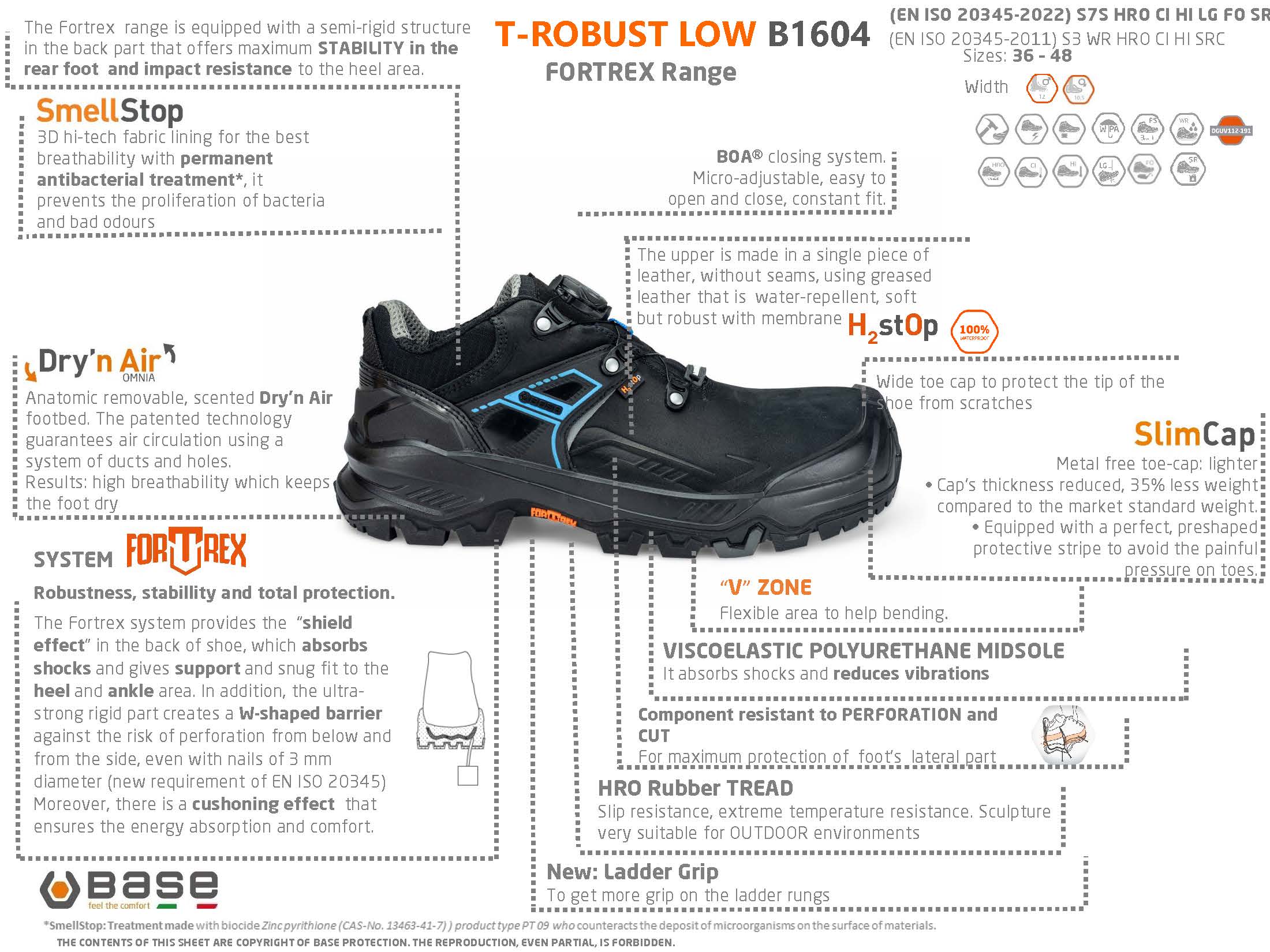 S7S HRO CI HI LG SC FO SR Ankle shoe, water resistant Nabutek leather; SmellStop lining, Fortrex puncture resistant patent + Dry’n Air footbed; SlimCap toe-cap; Fortrex sole Pu + Rubber