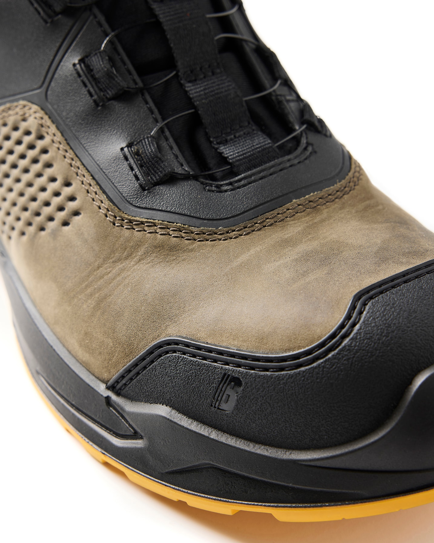 Kängorna har en metallfri tåhätta i komposit och ett flexibelt PS-spiktrampskydd som kan stå emot tunna 3 mm spikar. Anatomiskt utformad innersula tillverkad i ett mjukt och stötdämpande ETPU-material, som i kombination med fuktabsorberande textil närmast foten ger en överlägsen komfort.