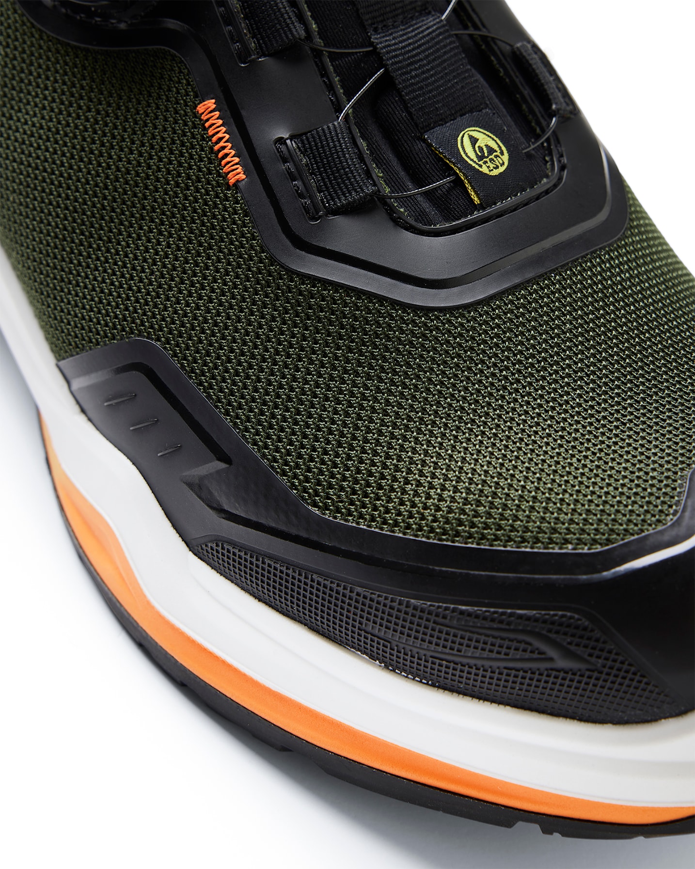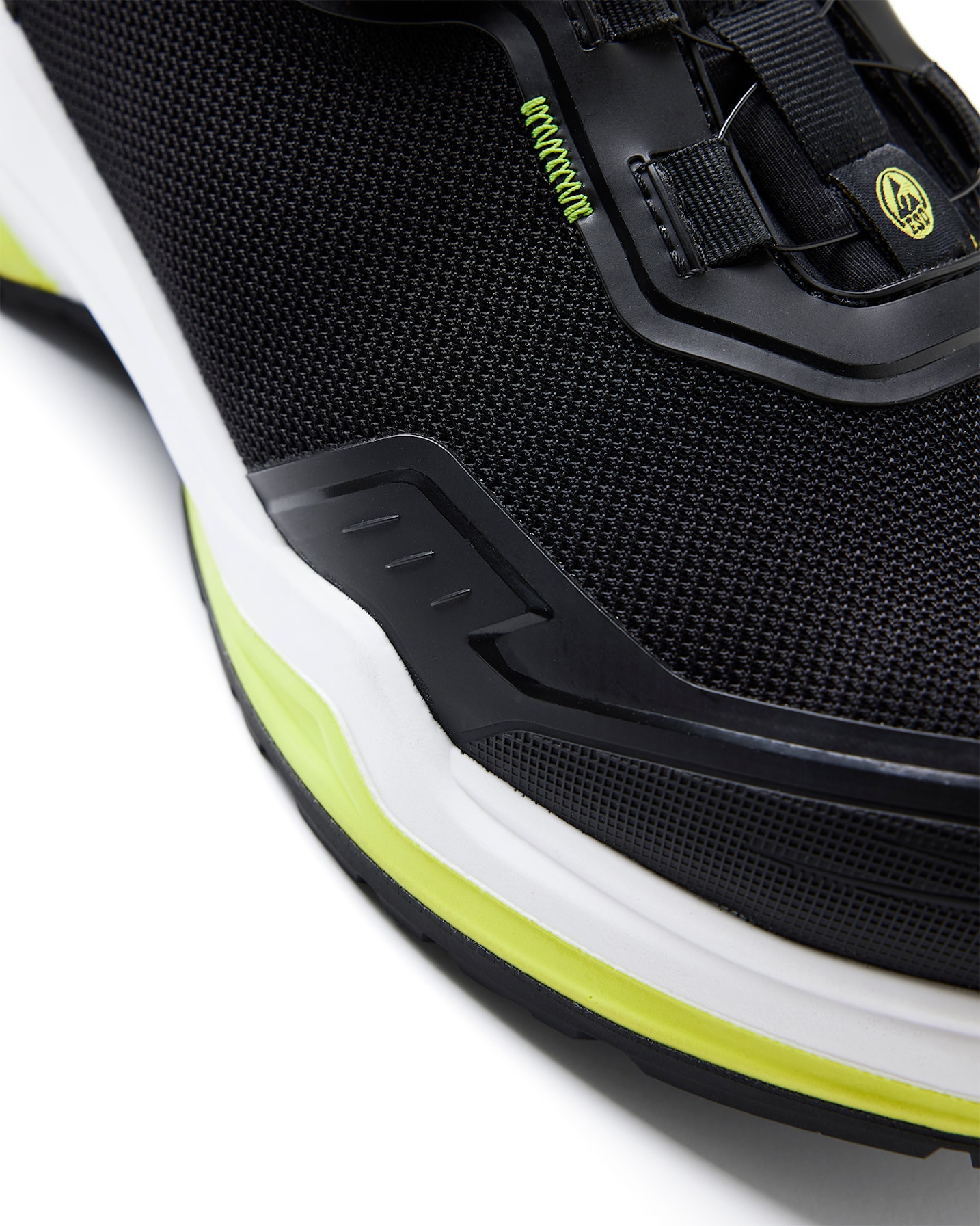 Skon har en NANO-tåhätta i komposit som är starkare, lättare och tunnare än andra icke-metalliska material. Flexibelt textilt PS-spiktrampskydd som kan stå emot tunna 3 mm spikar. Sulans innovativa 3-lagers-konstruktionen garanterar unik stötdämpning.
