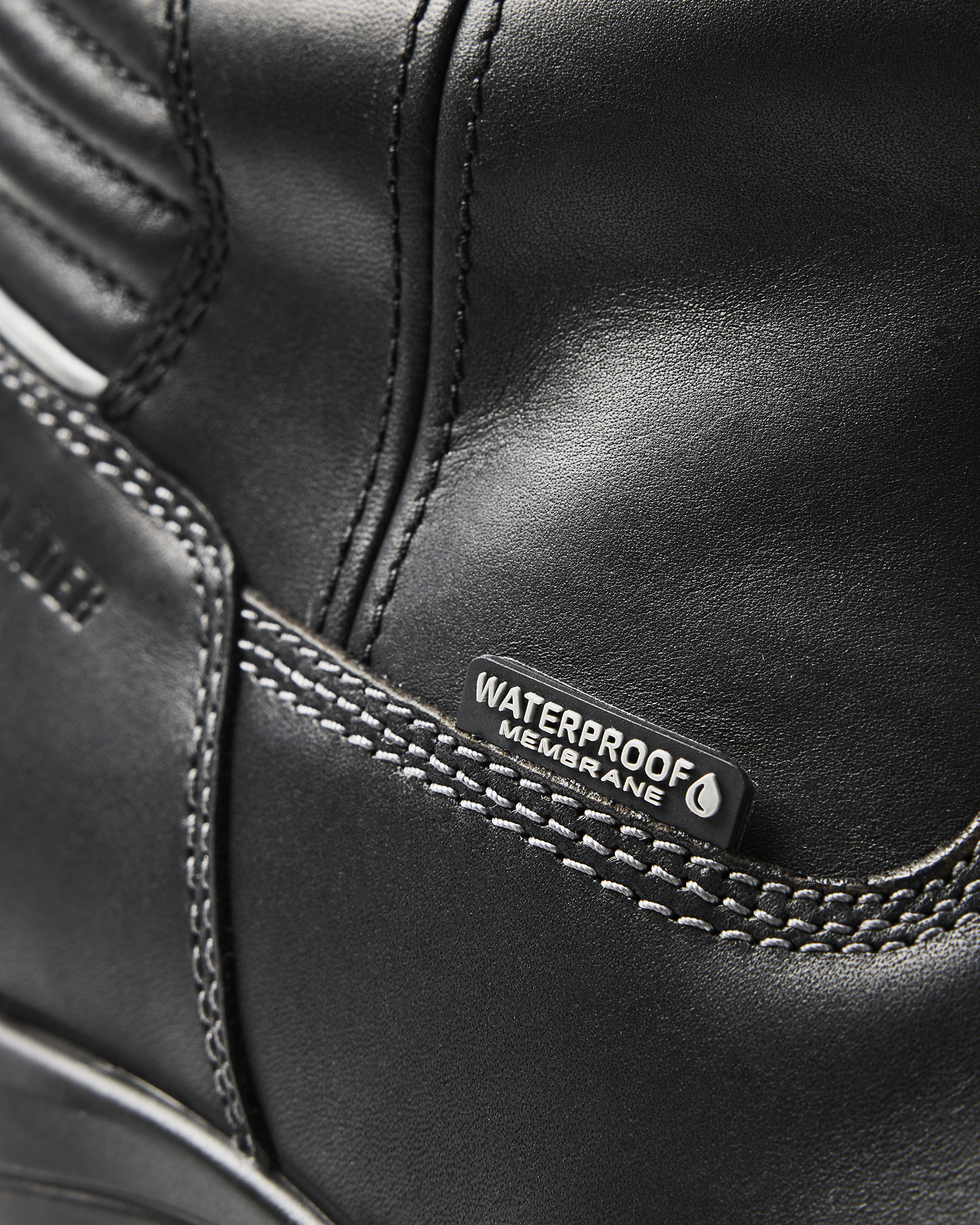- Vattenavvisande och slitstarkt ovandelsmaterial i fullnarvsläder i kombination med membran gör kängorna vattentäta