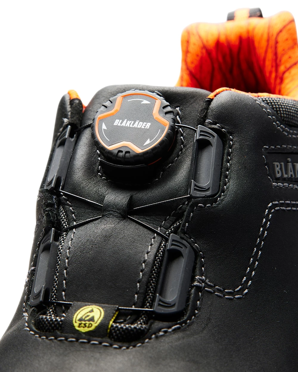 Freelock, Polstrat skaftkant, Antistatiska egenskaper, ESD-godkänd (överensstämmer med IEC 61340-5-1), Hälförstärkning, Oljebeständig yttersula, Reflexdetaljer, Tåslitskydd, Vattentät