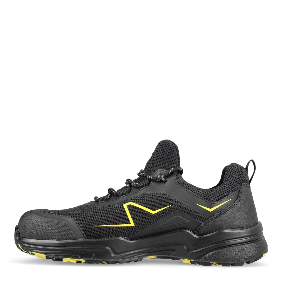 Skyddsskor i sportig design, certifierade enligt de nya standarderna från 2022. Ovandel i ventilerande mesh som andas gör skon perfekt för varma fötter och varma dagar. Skon är utvecklad i en elastisk ”slip on”-design, så att du enkelt kan dra upp skon runt foten utan att anstränga dig. Du behöver bara knyta snören en gång. ProNose av KPU, ett extra slitstarkt material, är godkänt enligt 2022-standarden och rekommenderas för arbete på knä. Sulan, tillverkad av extra halkhämmande och stötabsorberande PU/gummi för bra fotfäste, består av två olika färger. Det gör att skorna sticker ut, kamouflerar smuts och damm och gör varje sko helt unik. En konstruktion i sulan minskar belastningen på hälbenet och fördelar trycket över hela hälen. En mjuk och stötabsorberande inläggssula som andas ger bra komfort och minskar belastningen på leder, fötter, ben och rygg. ESD-godkänd, PVC- och metallfri.