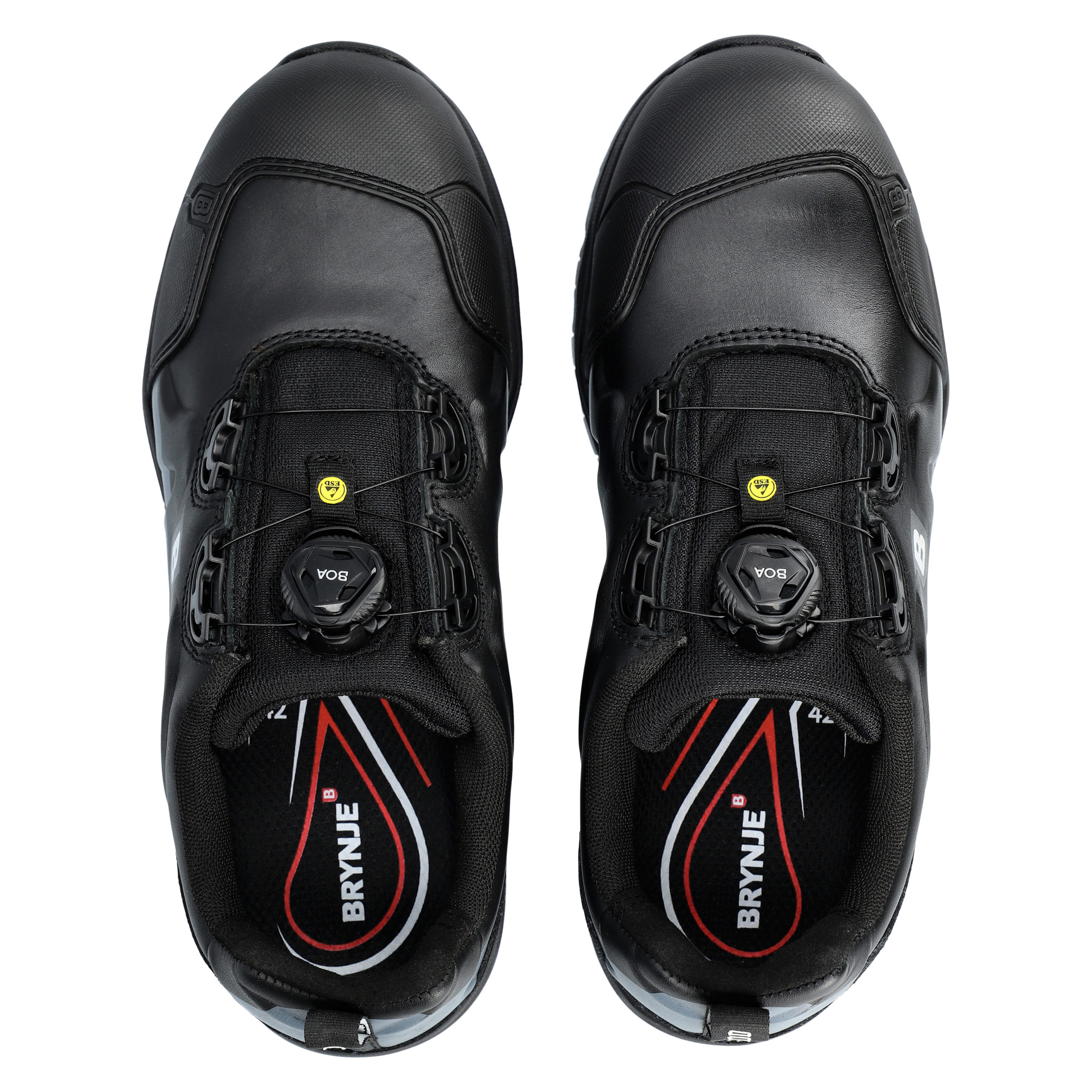 Lätt, slitstark och snygg skyddssko av fullnarvläder med BOA® Fit System. Yttersulan är gjord av extra halkhämmande, flexibelt och stötdämpande EVA/gummi. Sulan har en solid greppsula och stabiliserande gelänk som motverkar stukningar och fördelar trycket jämnt över hela sulan. Inläggssulan är gjord av stötabsorberande och svettransporterande PU. Med stängd plös, förstärkt foder i hälen och ProNose för extra slitstyrka. ESD-godkänd