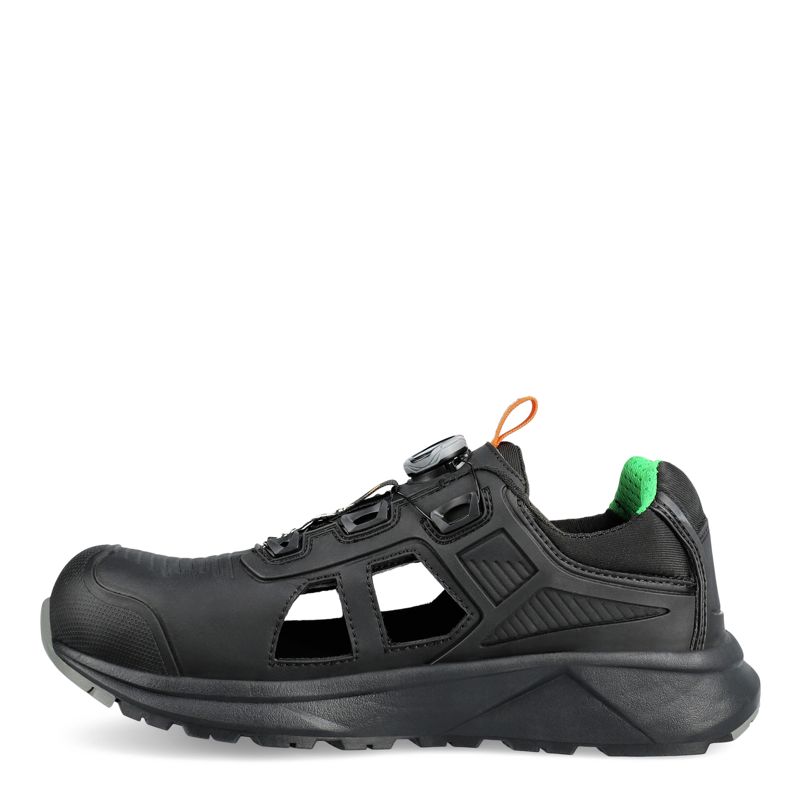Lätt skyddssandal certifierad enligt de nya standarderna från 2022. Överdelen består av vattenavvisande mikrofiber och detaljer i KPU. Kombinationen av mikrofiber och KPU-detaljer ger extra styrka och stabilitet vid ankeln. Skon spänns och lossas med det innovativa BOA® Fit System, vilket ger en perfekt passform. ProNosen av KPU, ett slitstarkt material, är godkänt enligt 2022-standarden och rekommenderas för arbete på knä. Gummisulan är halkhämmande, och tillsammans med en mjuk, stötabsorberande mellansula i EVA ger det en bekväm och flexibel sko. Sulan består också av en gelänk, som ger skon stabilitet och minskar vridmoment och belastning på hälen. Sulmönstret är utformat med stora nabbar och breda räfflor, så att jord, sand, vatten och lera lätt kan rinna bort och ge bra grepp. Inläggssulan är stötabsorberande, mjuk, flexibel och andningsbar och består bland annat av återvunnet PU-skum, som är skumrester från tillverkningen av inläggssulor. ESD-godkänd.