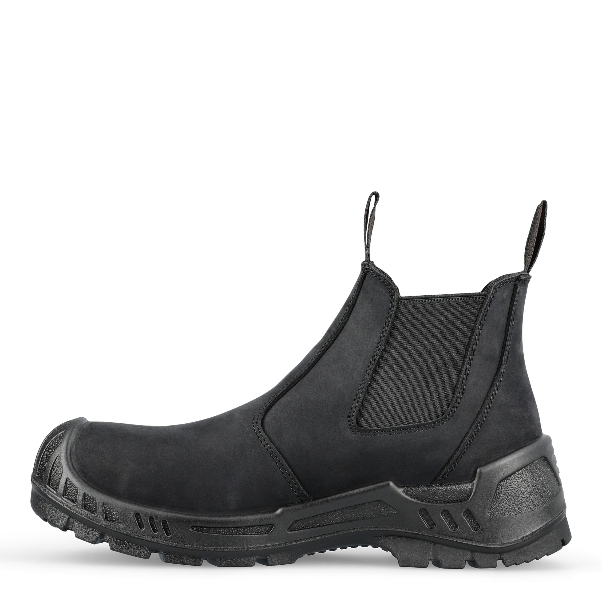 Skyddskänga tillverkad av slitstarkt, andningsbart och vattenavvisande läder. Med starka polyesterremmar och en bred resår ovandel, vilket gör det enkelt att ta på och av kängan. Flexibel, halkfri och stötdämpande PU/PU-yttersula. Stötdämpande, andningsbar och svetttransporterande PU-inläggssula, med extra förstärkning i hälfodret. Med ProNose för extra slitstyrka. Metallfri.
