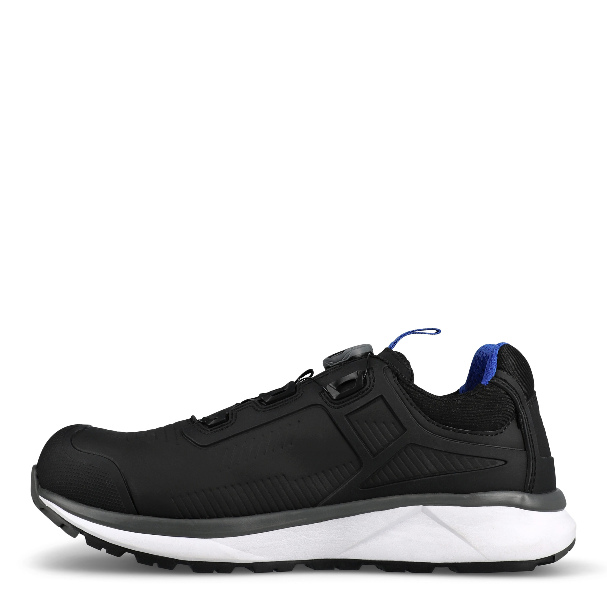 Lätt skyddssko certifierad enligt de nya standarderna från 2022. Överdelen består av vattenavvisande mikrofiber och detaljer i KPU. Kombinationen av mikrofiber och KPU-detaljer ger extra styrka och stabilitet vid ankeln. Skon spänns och lossas med det innovativa BOA® Fit System, vilket ger en perfekt passform. ProNosen av KPU, ett slitstarkt material, är godkänt enligt 2022-standarden och rekommenderas för arbete på knä. Gummisulan är halkhämmande, och tillsammans med en mjuk, stötabsorberande mellansula i EVA ger det en bekväm och flexibel sko. Sulan består också av en gelänk, som ger skon stabilitet och minskar vridmoment och belastning på hälen. Sulmönstret är utformat med stora nabbar och breda räfflor, så att jord, sand, vatten och lera lätt kan rinna bort och ge bra grepp. Inläggssulan är stötabsorberande, mjuk, flexibel och andningsbar och består bland annat av återvunnet PU-skum, som är skumrester från tillverkningen av inläggssulor. ESD-godkänd.