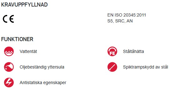 - Motverkar risk för: Tåskador, spikpenetration, blöta fötter