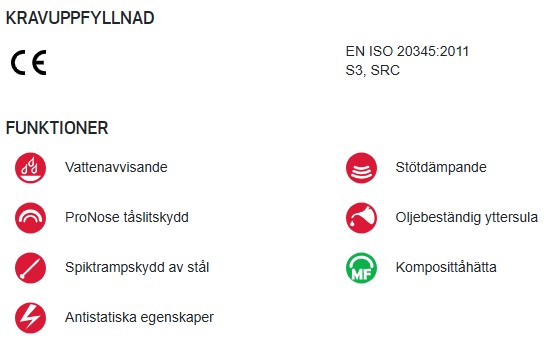 - Motverkar risk för: Tåskador, spikpenetration