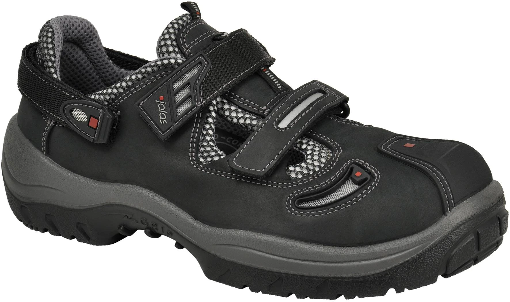 Skyddssandal, tåhättematerial aluminium, mellansula i PU, plastgelänk, slitsula i nitril, ovandelsmaterial nubuck;Textil