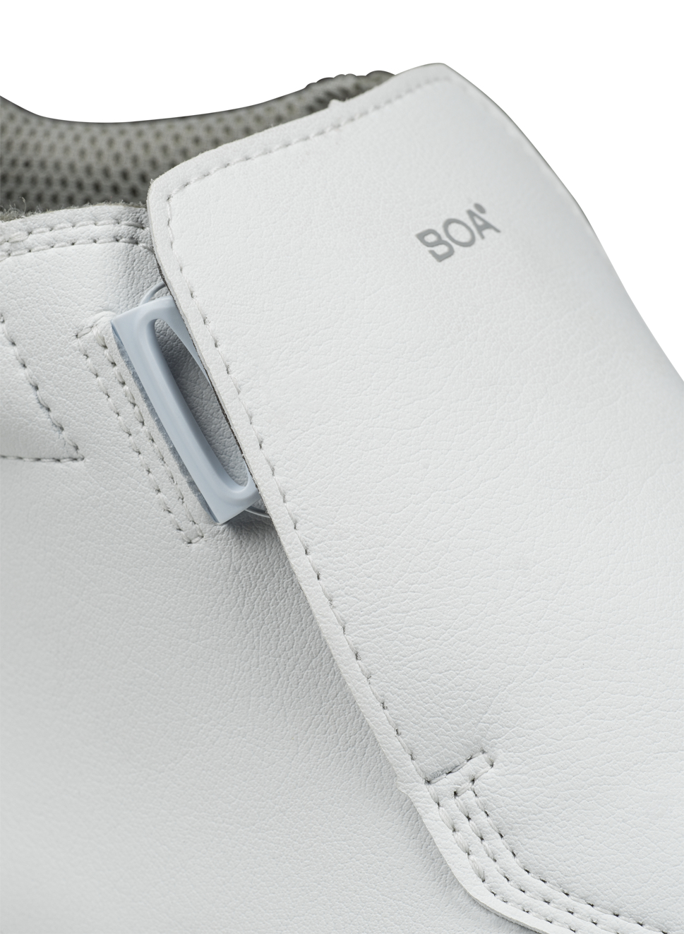 Vit medelhög sko för miljöer med höga hygienkrav. Ovandel i mikrofiber. BOA® Fit System säkerställer god ergonomi och har ett extra överdrag som är lätt att rengöra.