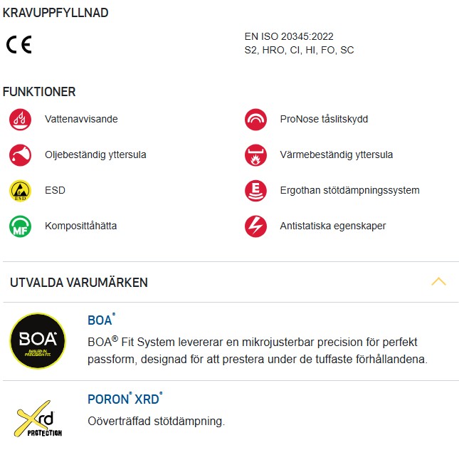 • Motverkar risk för: Tåskador, vrickningsskador, antistatiska risker