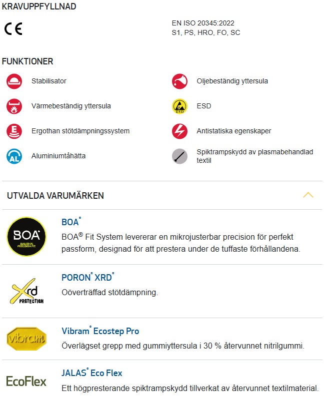 - Motverkar risk för: Tåskador, spikpenetration, vrickningsskador, antistatiska risker