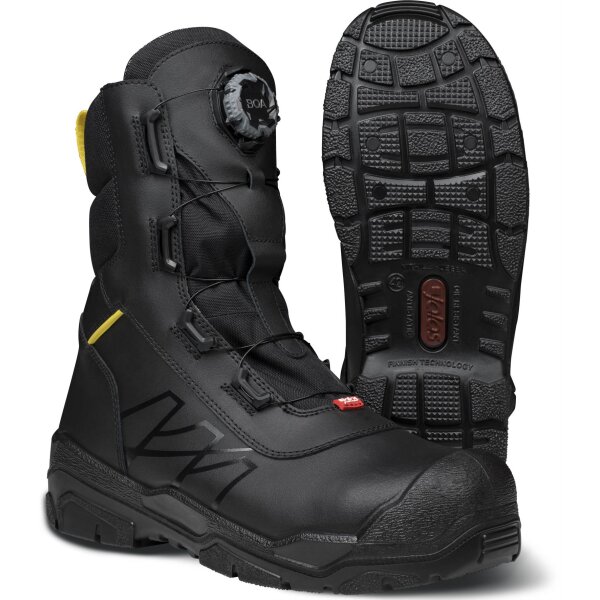 Denna höga känga är gjord för de riktigt tuffa förhållandena. För bekvämlighetens skull har den en extra bred passform, tekniskt fleecefoder och BOA® Fit System. För säkerhets skull har den FX2 Pro innersula med PORON®XRD® för stötdämpning, yttersula i nitrilgummi för utmärkt grepp på kalla eller hala ytor, en funktion för att säkra greppet på stegar, spiktrampskydd i stål och lätt aluminiumtåhätta. Använd den där vanliga skyddsskor inte räcker till.