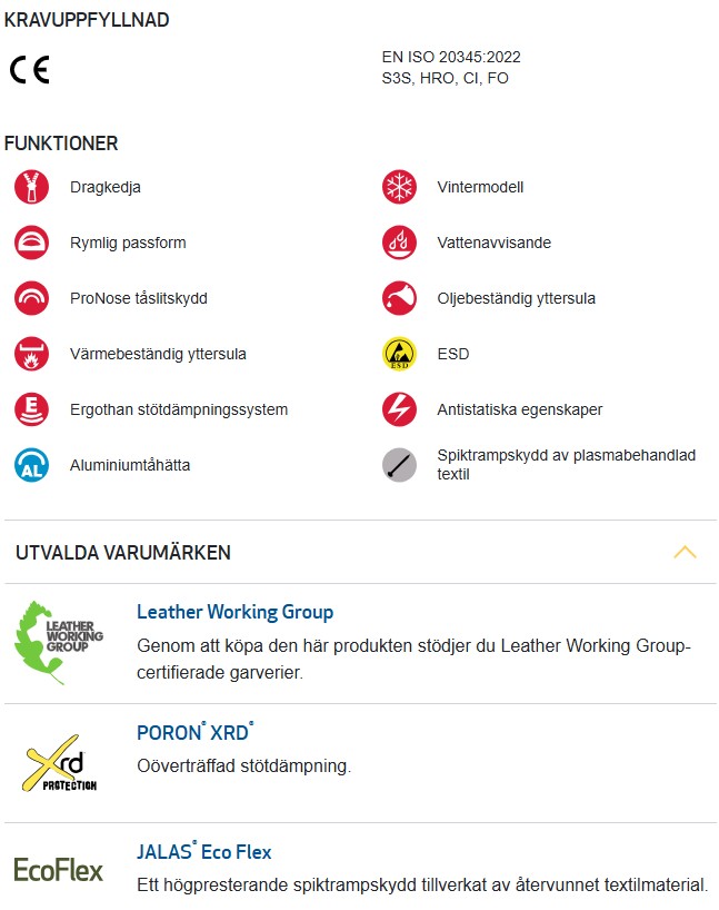 - Motverkar risk för: Tåskador, spikpenetration, antistatiska risker, kontakt med kyla, halkning