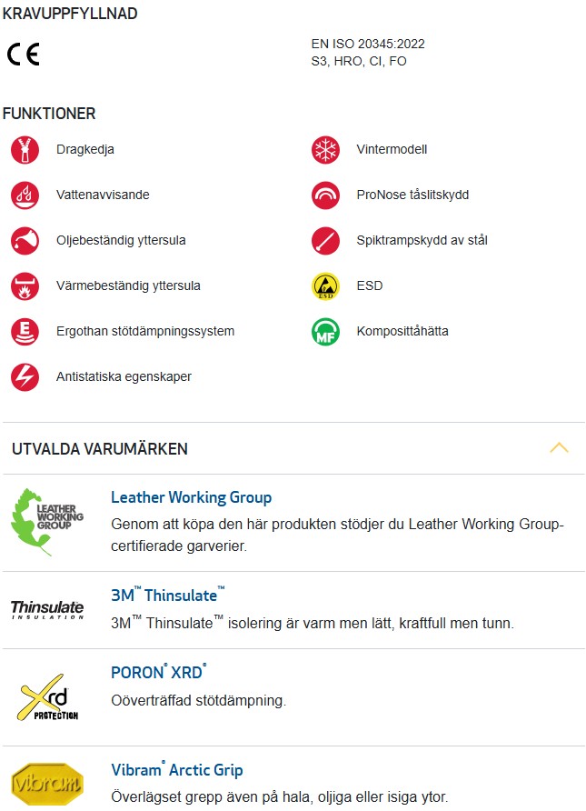- Huvudsakliga användningsmiljöer: Utomhus, hala miljöer, kalla miljöer, krävande miljöer