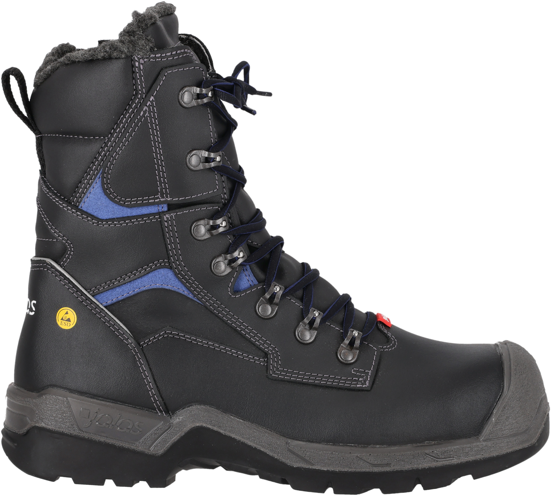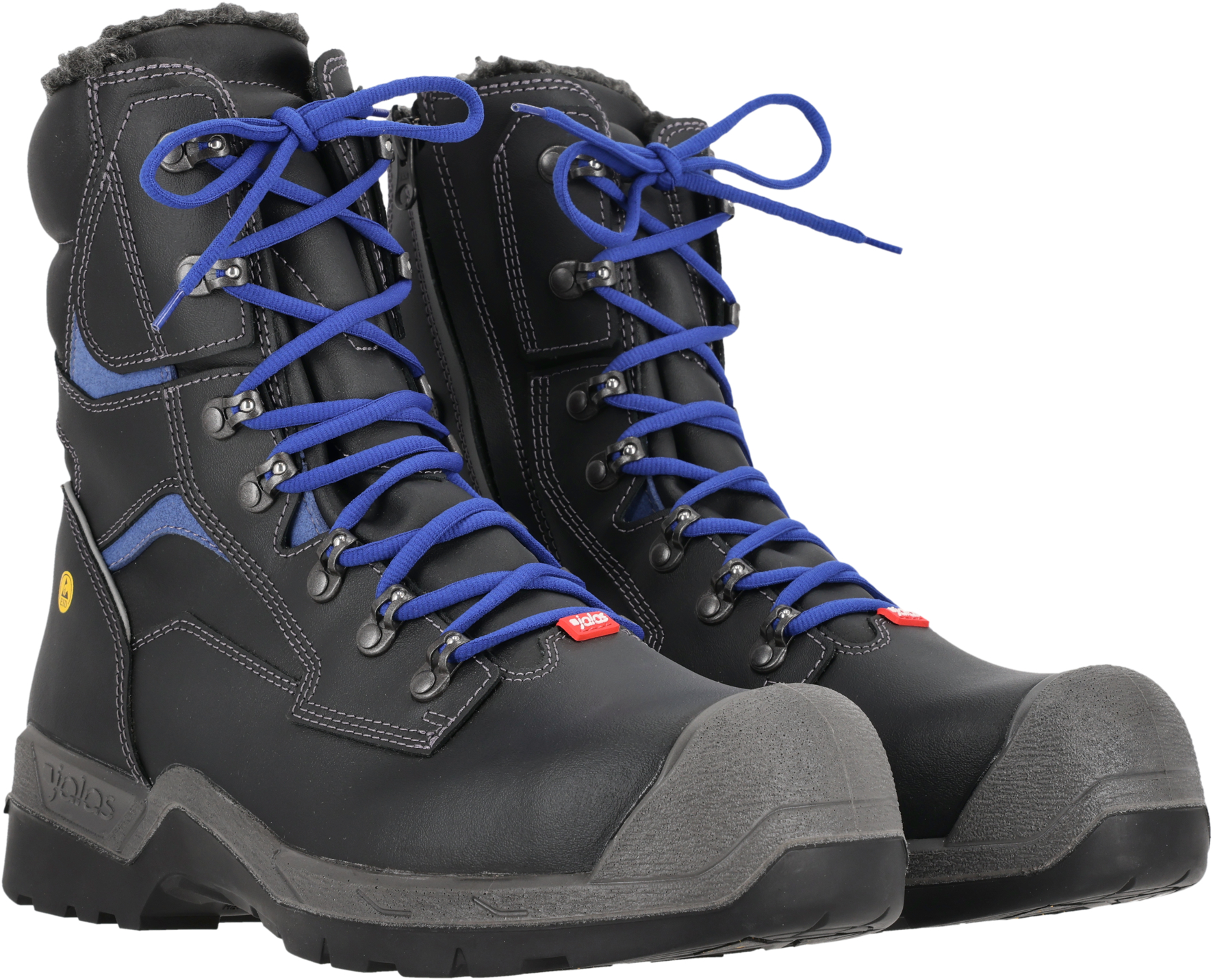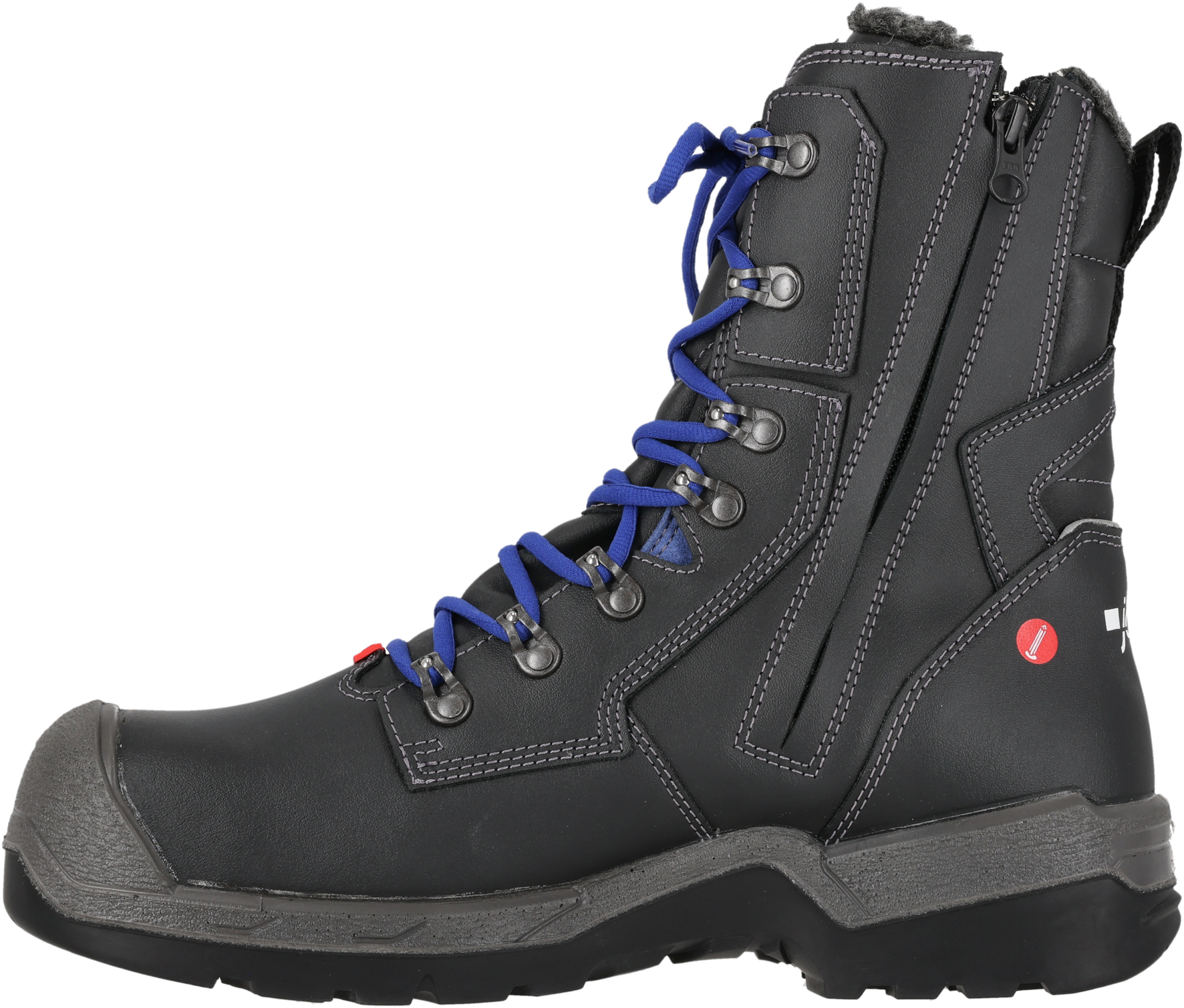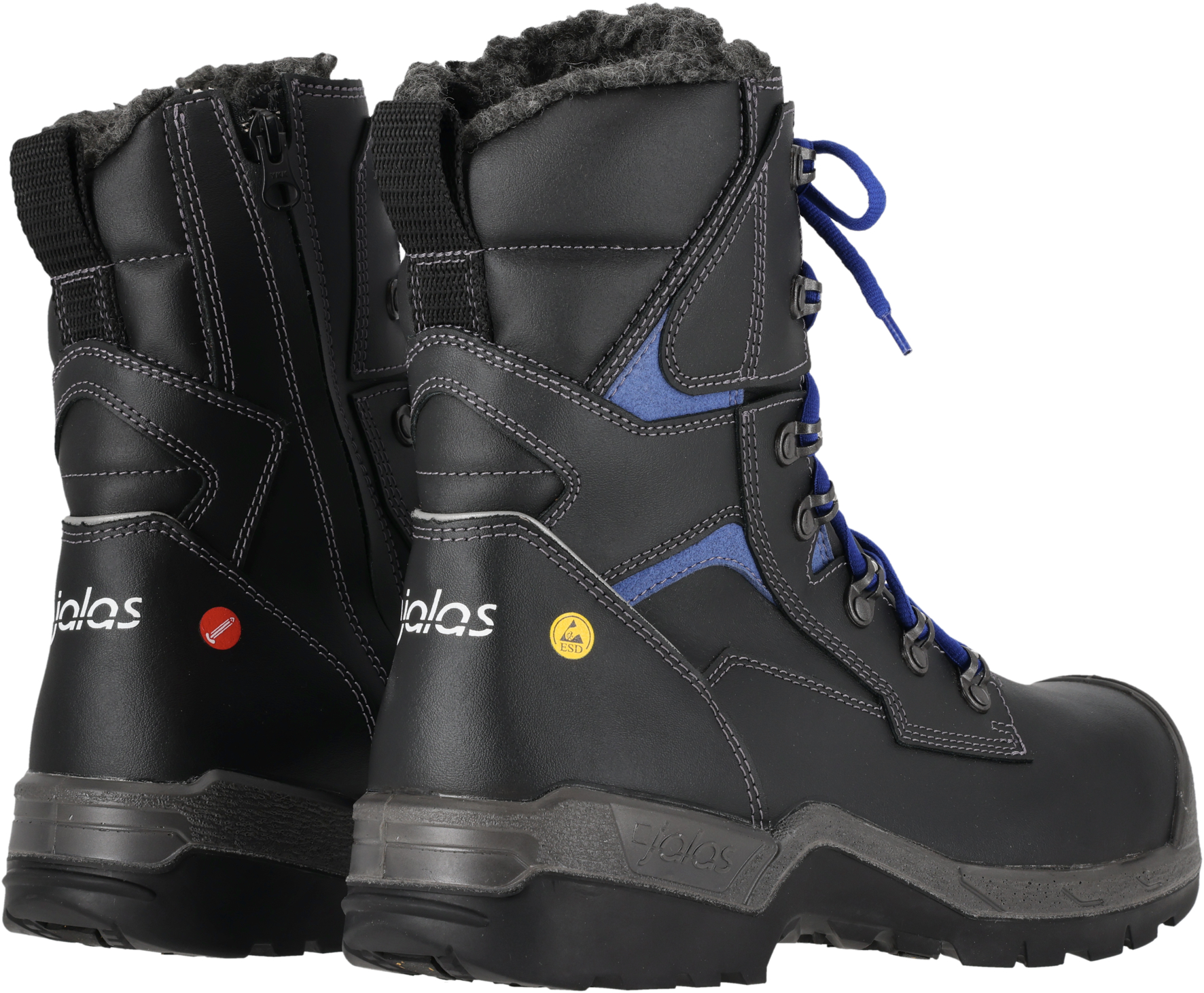 En varmfodrad skyddskänga för vintern med högsta skyddsnivå (S3), utformad för mycket kalla eller hala förhållanden. PU-belagt läder, syntetisk päls och Thinsulate™-foder skyddar fötterna under alla förhållanden. Den olje- och värmebeständiga yttersulan Vibram Arctic Grip ger ett extremt bra grepp på is. JALAS® komposittåhätta, spiktrampskydd i stål och dubbla stötdämpande zoner i PORON® XRD® skyddar fötterna i krävande miljöer. Kommer med blå och svarta skosnören.