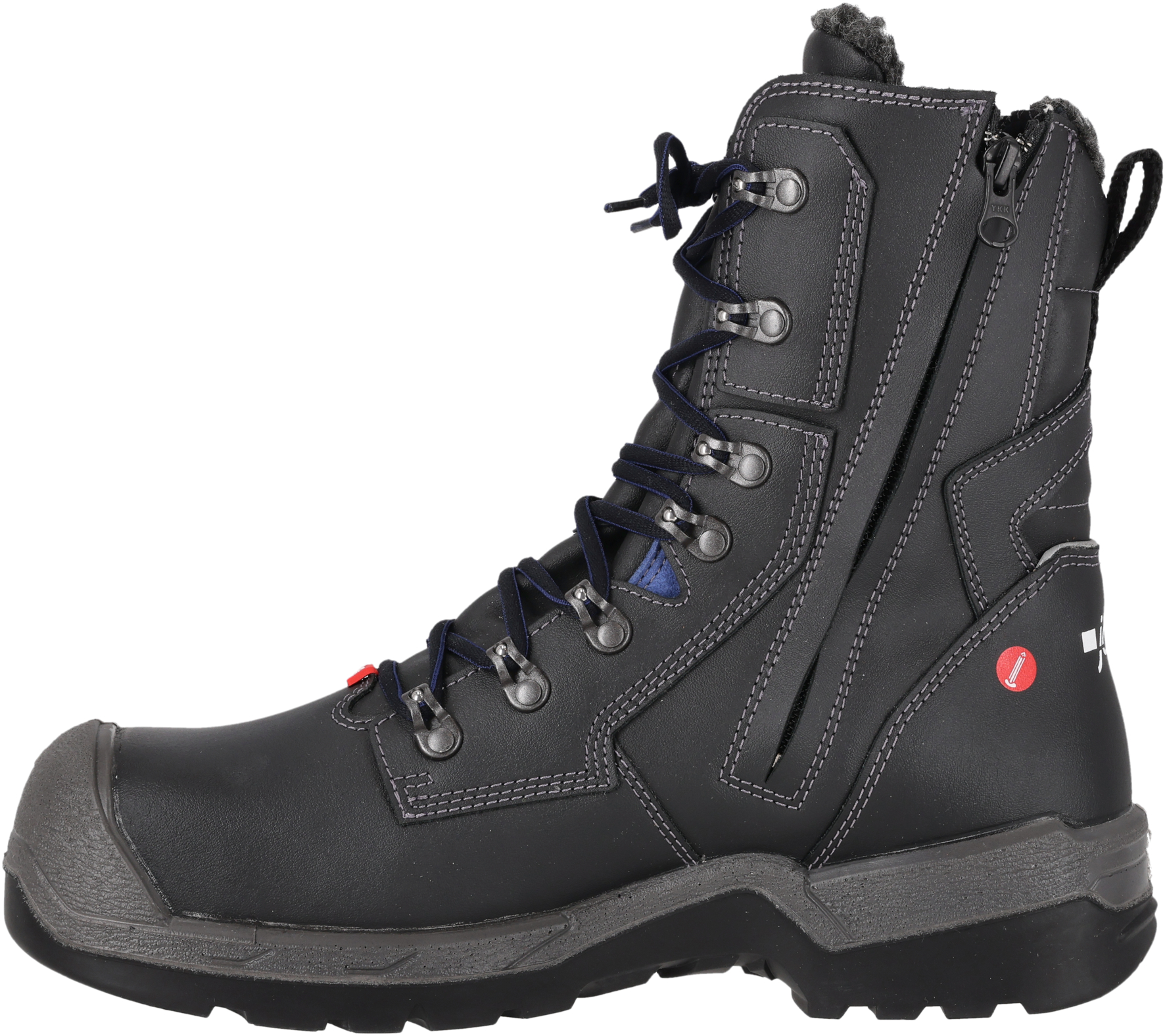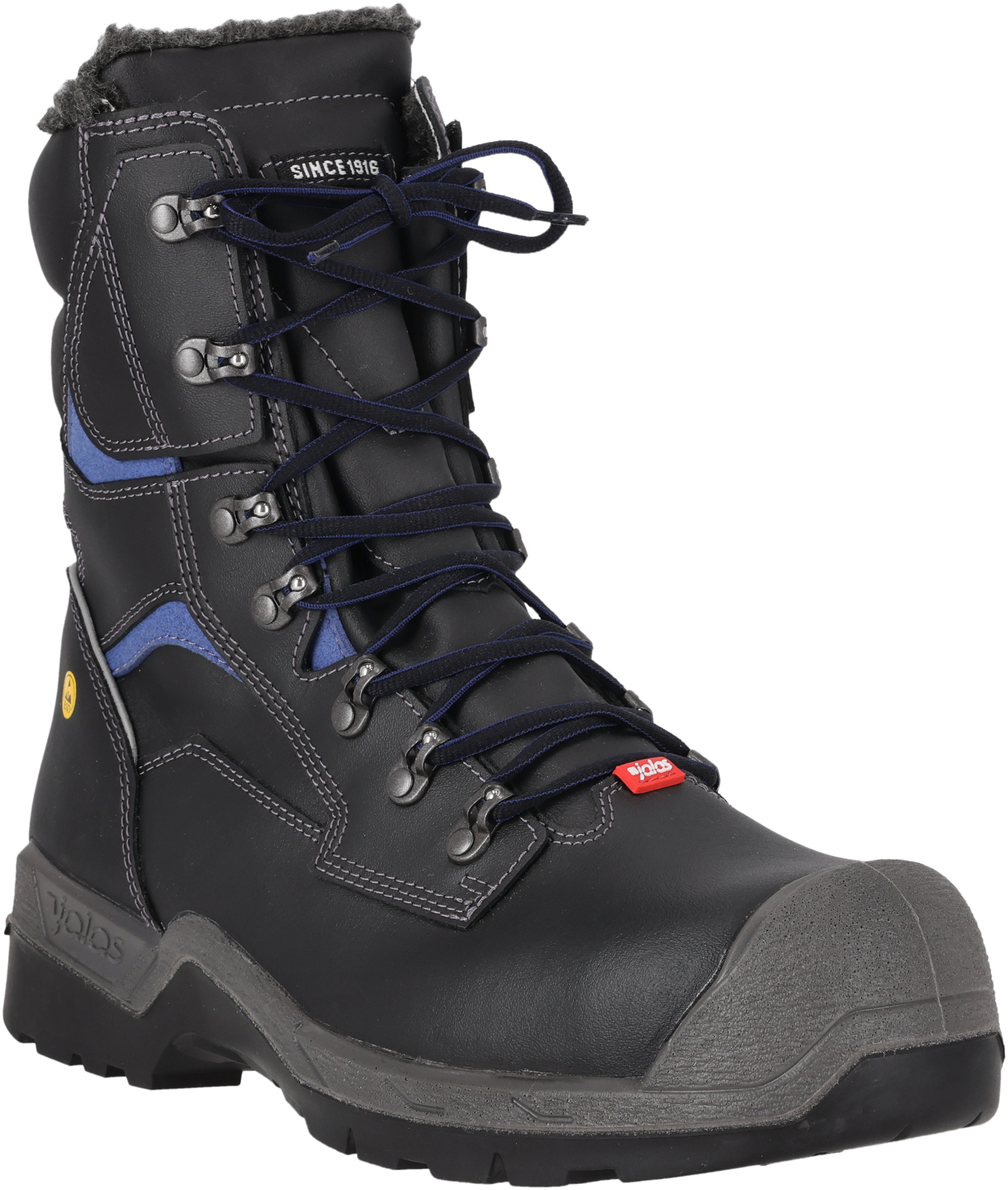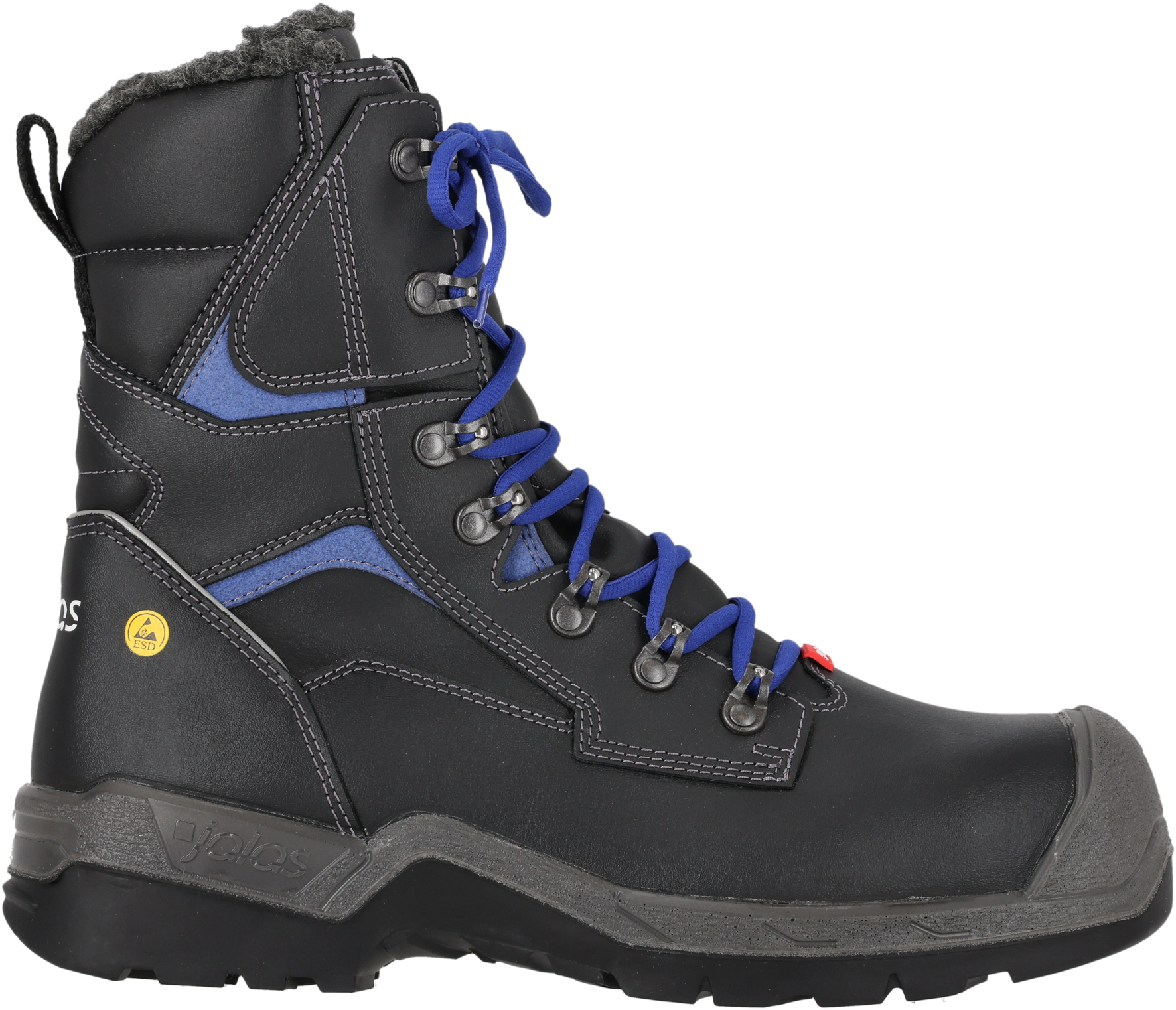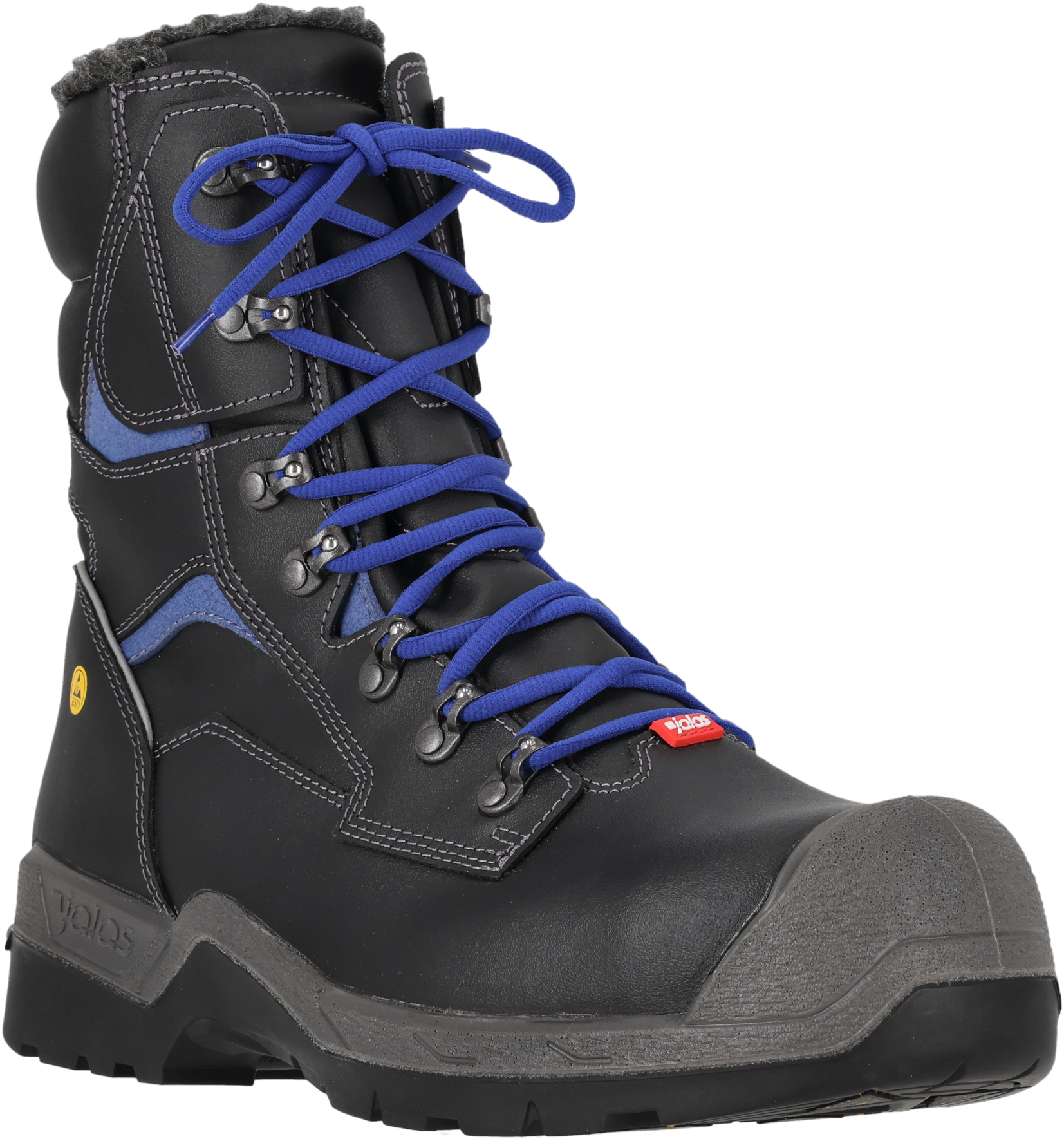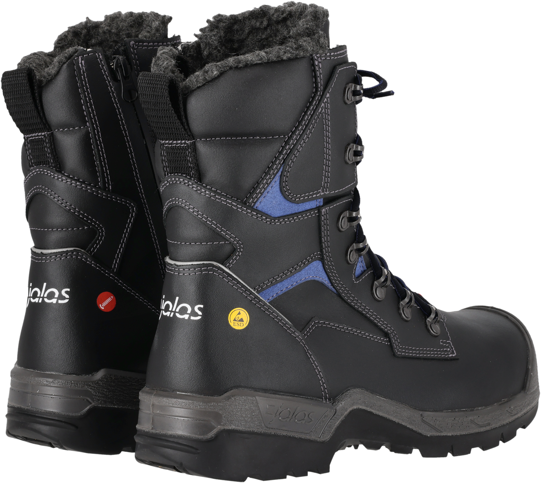 En varmfodrad skyddskänga för vintern med högsta skyddsnivå (S3), utformad för mycket kalla eller hala förhållanden. PU-belagt läder, syntetisk päls och Thinsulate™-foder skyddar fötterna under alla förhållanden. Den olje- och värmebeständiga yttersulan Vibram Arctic Grip ger ett extremt bra grepp på is. JALAS® komposittåhätta, spiktrampskydd i stål och dubbla stötdämpande zoner i PORON® XRD® skyddar fötterna i krävande miljöer. Kommer med blå och svarta skosnören.
