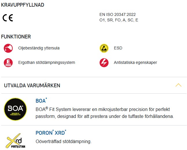 - Motverkar risk för: Vrickningsskador, antistatiska risker, halkning, belastningsskador