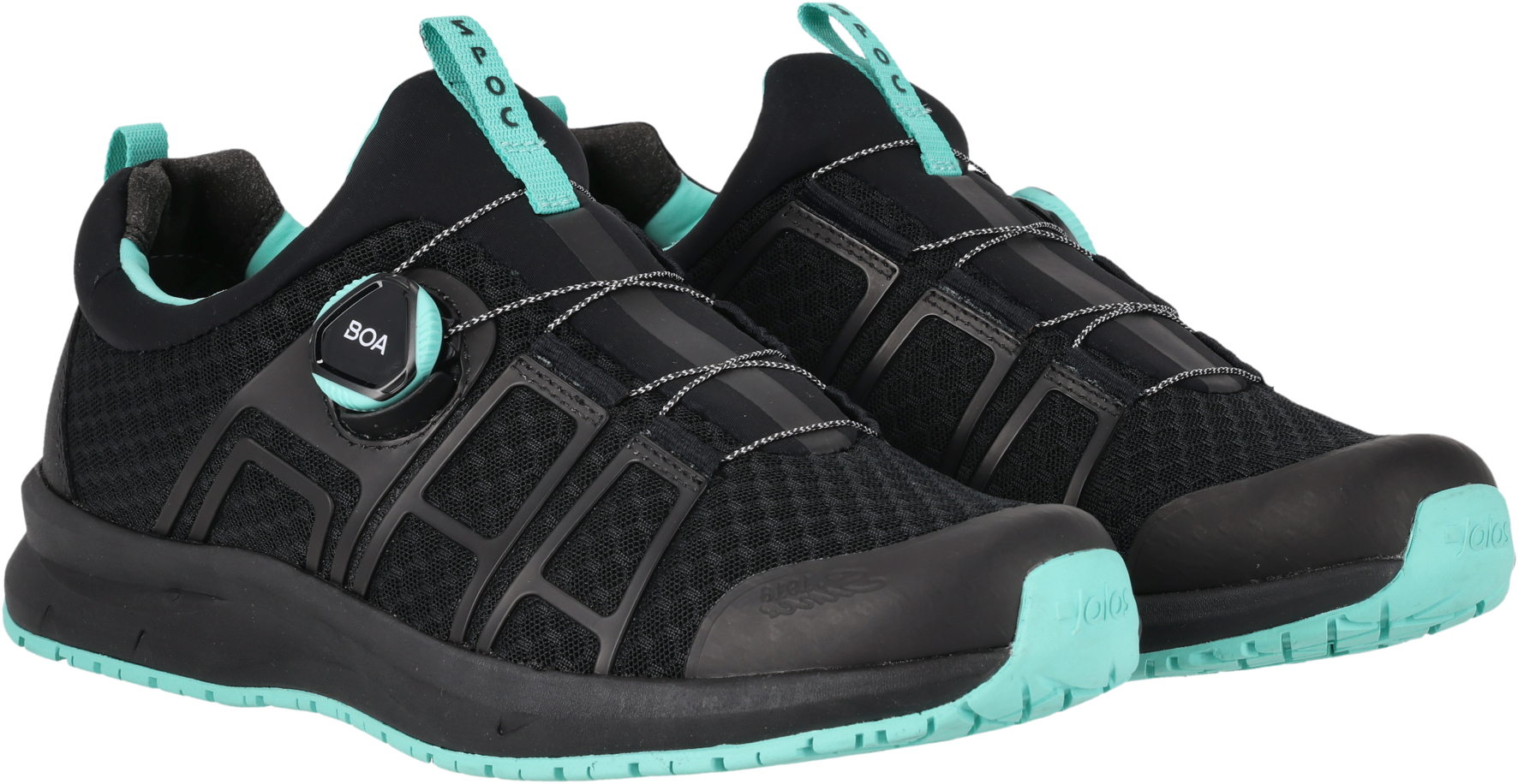 SpOc, en certifierad yrkessko med exceptionell komfort, finns nu i färgen aqua och svart. Ovandelen är sömlöst stickad i ett ultralätt material som andas. Mellansulan är tillverkad av ett kompositmaterial som består av 50 % biobaserad EVA från sockerrör och 50 % konventionell EVA. Skon har oljebeständig yttersula i nitril för bra grepp och BOA® Fit System som säkerställer perfekt passform. Innersula med det unika Poron® XRD®-materialet absorberar upp till 90% av stötenergin.