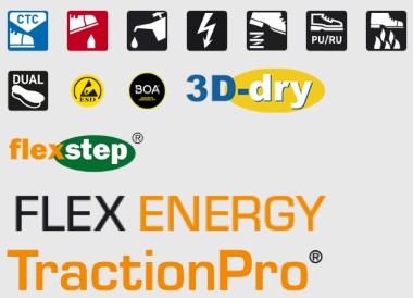 Elasticitetselementet FlexEnergy® i kombination med öppningarna i skons häl möjliggör en större rörlighet och ökar skons avancerade flexibilitet. Ovandelens nätstruktur på sidorna främjar skons andningsegenskaper. Med snörningsmekanismen BOA® Fit System kan du snabbt ta på och av skorna. Friktionssulan Sievi TractionPro® ger ett utmärkt grepp på hala ytor.
