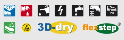 Ankelsko med snörning, tillverkad av hållbart PU-belagt skinn, med tåskydd av komposit och spiktrampskydd av stål. Skornas polyuretansula tål olja och olika kemikalier samt dämpar stötar effektivt. Den formade lössulan andas och dessutom förbättrar 3D-dry®-fodret skornas ventilation och därigenom användningskomforten. ESD-godkänd.