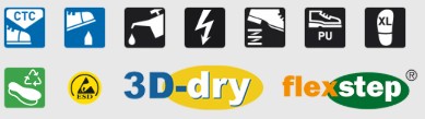 Slitstarka skyddsskor med tå- och spiktrampskydd av komposit. Tack vare 3D-dry®-fodret och ovandelens lufthål andas skorna och känns behagliga vid användning. XL-lästen ger plats för tårna. Elastisk sula med bra grepp.