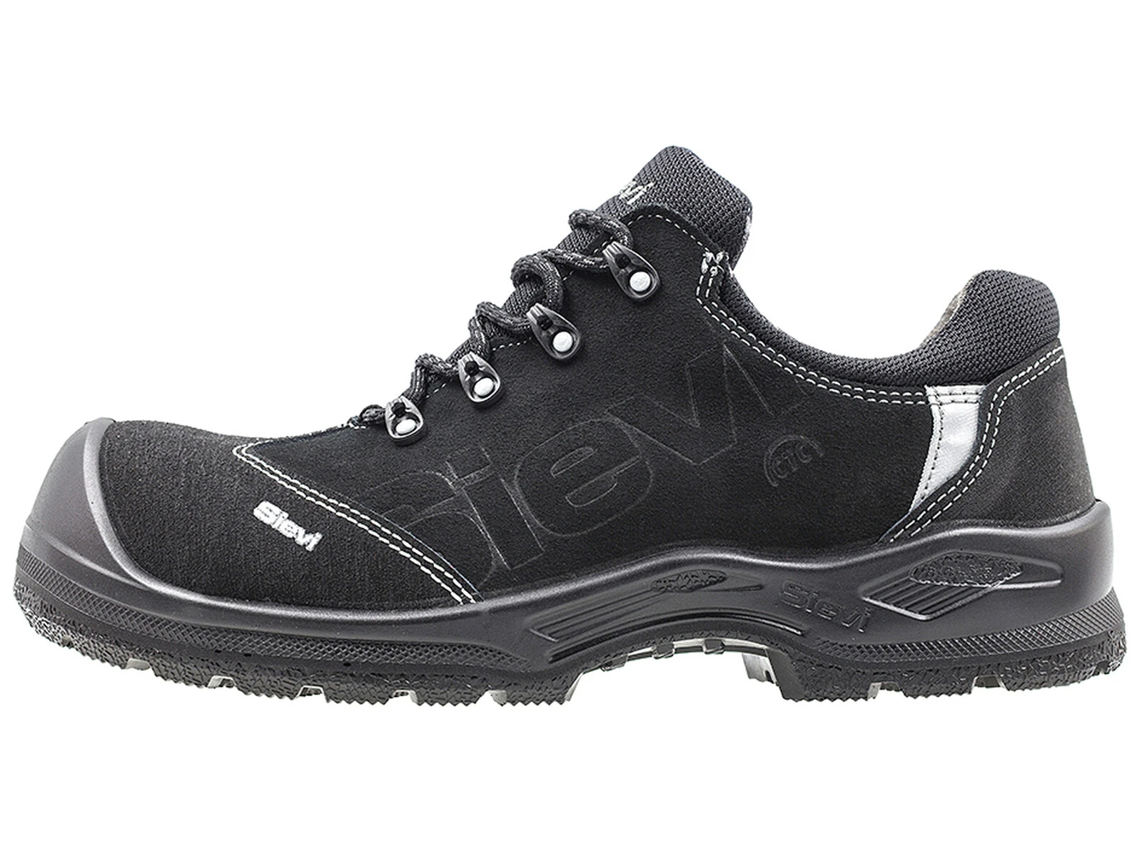 Lågsko med tåskydd och spiktrampskydd fria från metall. Tåhättan av PU ger ytterligare skydd. Ovandelens hållbara material behåller sin form och 3D-Dry®-fodret andas och håller fötterna torra. Vridförstyvningen SieviBalance® minskar olycksrisken genom att förbättra kontrollen av foten. Den mycket elastiska FlexStep®-sulan ger bra grepp. Dual-inläggen ökar användningskomforten. Bred XL-läst.