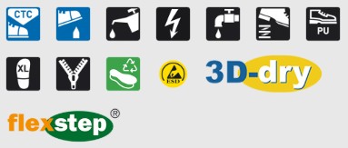 Högskaftade kängor med ett lätt foder samt tåskydd av komposit och spiktrampskydd av textil. Det PU-förstärkta tåpartiet ökar slitagetåligheten. Kängan har dragkedja på fotens insida och snörning på framsidan. Ovandelen av PU-belagt skinn behåller sin form väl och är vattenavstötande. Reflex på sidan. FlexStep®-sulan ger utmärkt stötdämpning och bra grepp. Bred XL-läst. Antistatisk och ESD-godkänd.