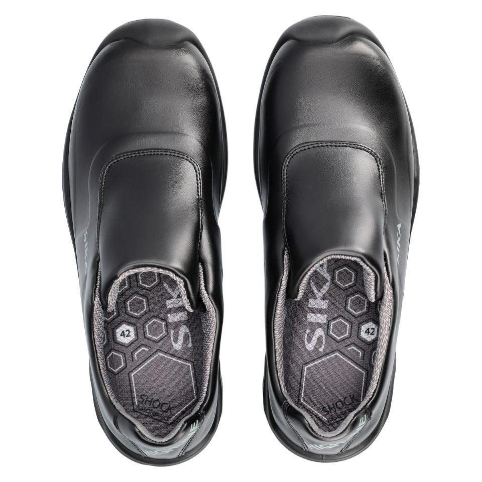 Extra halkhämmande loafer med resår över vristen och Nanotoe™. Lätt att rengöra. Yttersulan har solid greppsula med stabiliserande gelänk som motverkar stukningar och fördelar trycket jämnt över hela sulan. Skon är gjord i ventilerande, slitstarkt och vattenavvisande Permair®-läder, medan innerfodret är av svettransporterande och snabbtorkande Sympatex Moisture-Tech® med extra förstärkning i hälen. Ventilerande, tvättbar och antibakteriell inläggssula. Extra tåförstärkning, metallfri, ESD-godkänd och PVC-fri. Med lätt, tunn och stark tåhätta av carbon nanotube-förstärkt glasfiber.