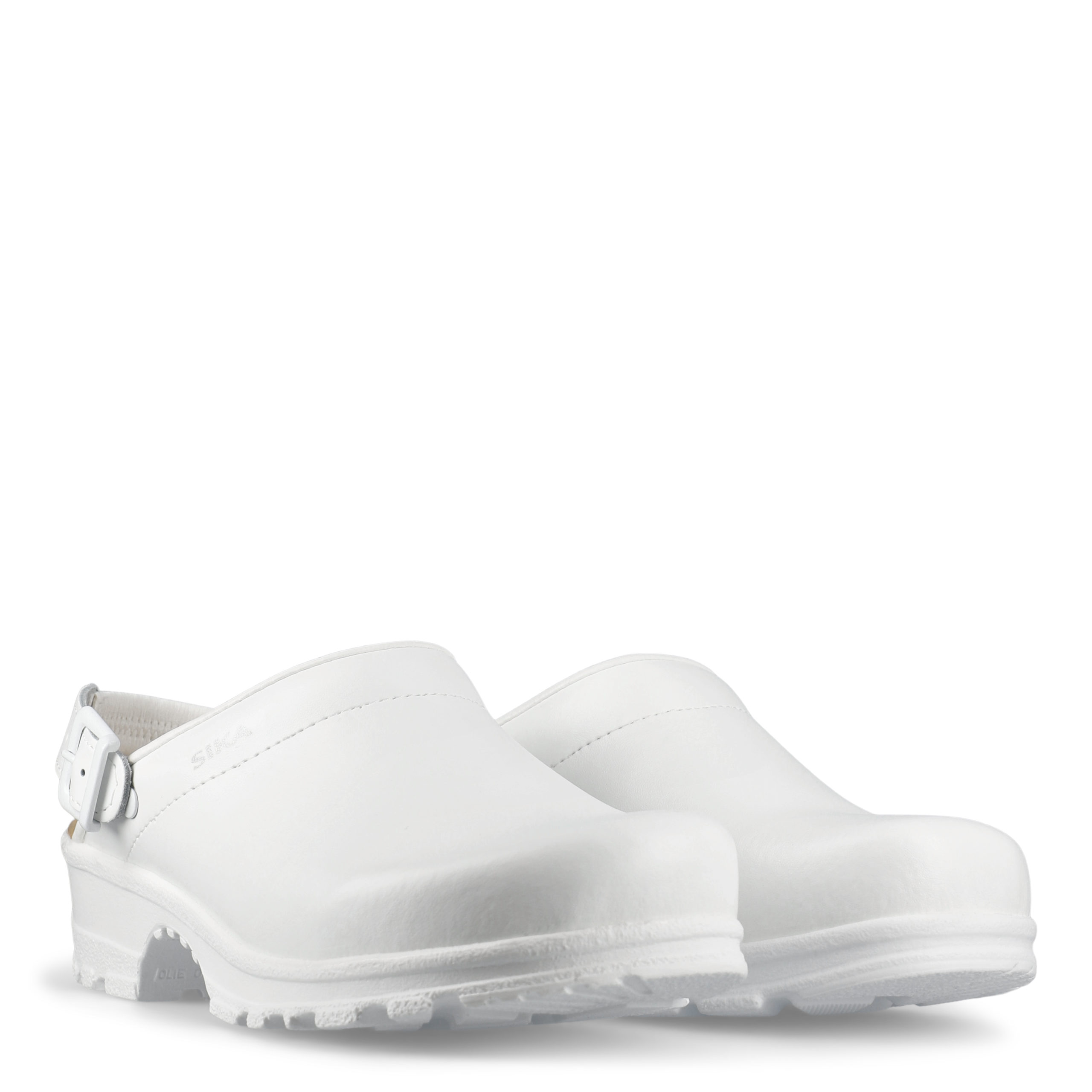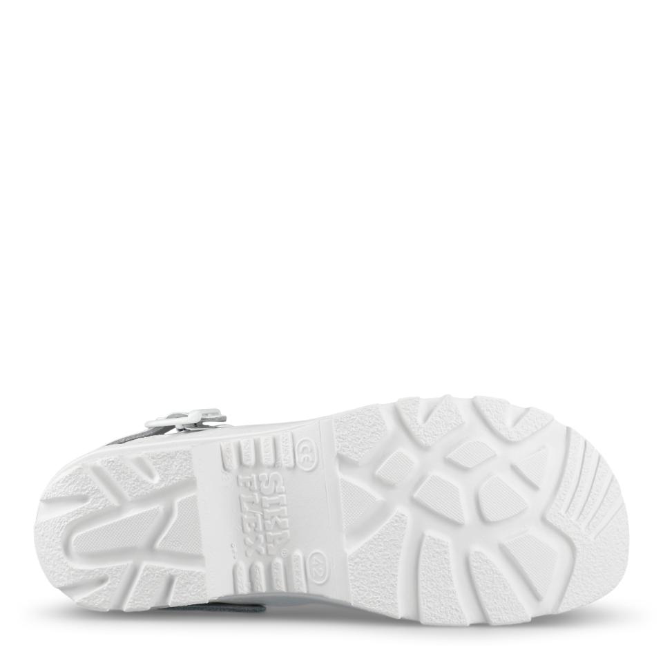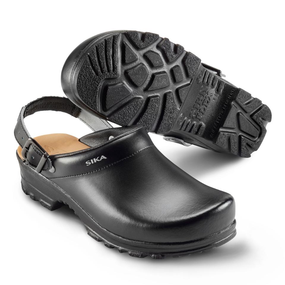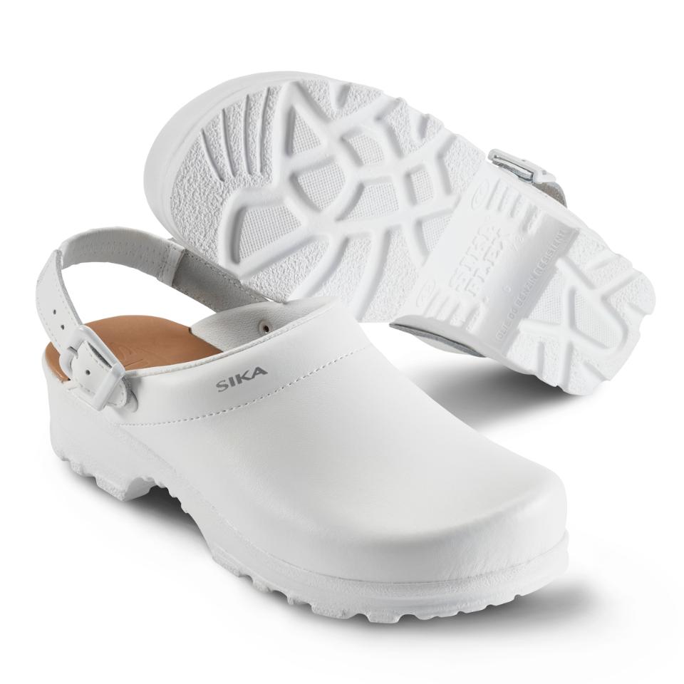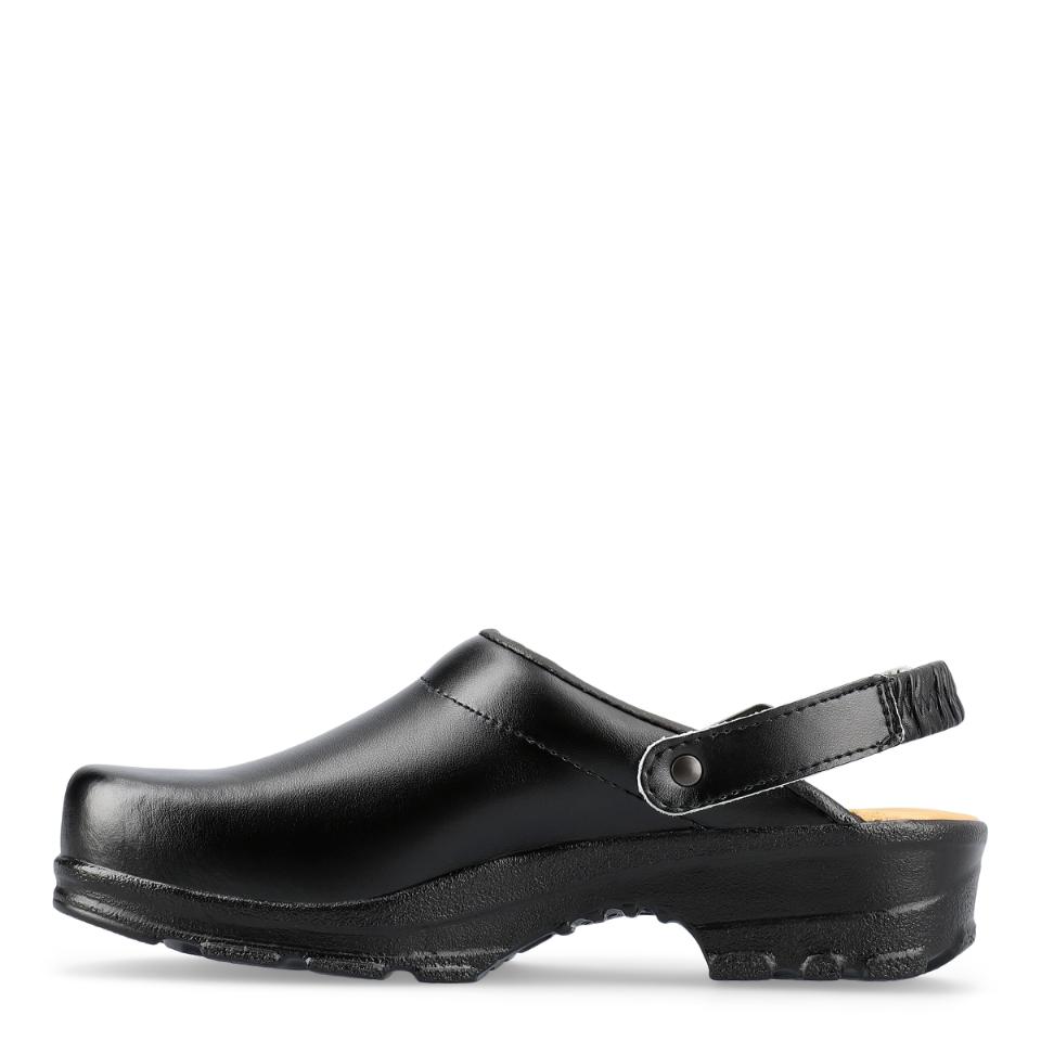 Bekväm och flexibel mjuktoffel med hälrem. Bred passform och god stötabsorbering. Mjuk och extra skön LBS-innersula av skum och läder. Finns i svart och vit