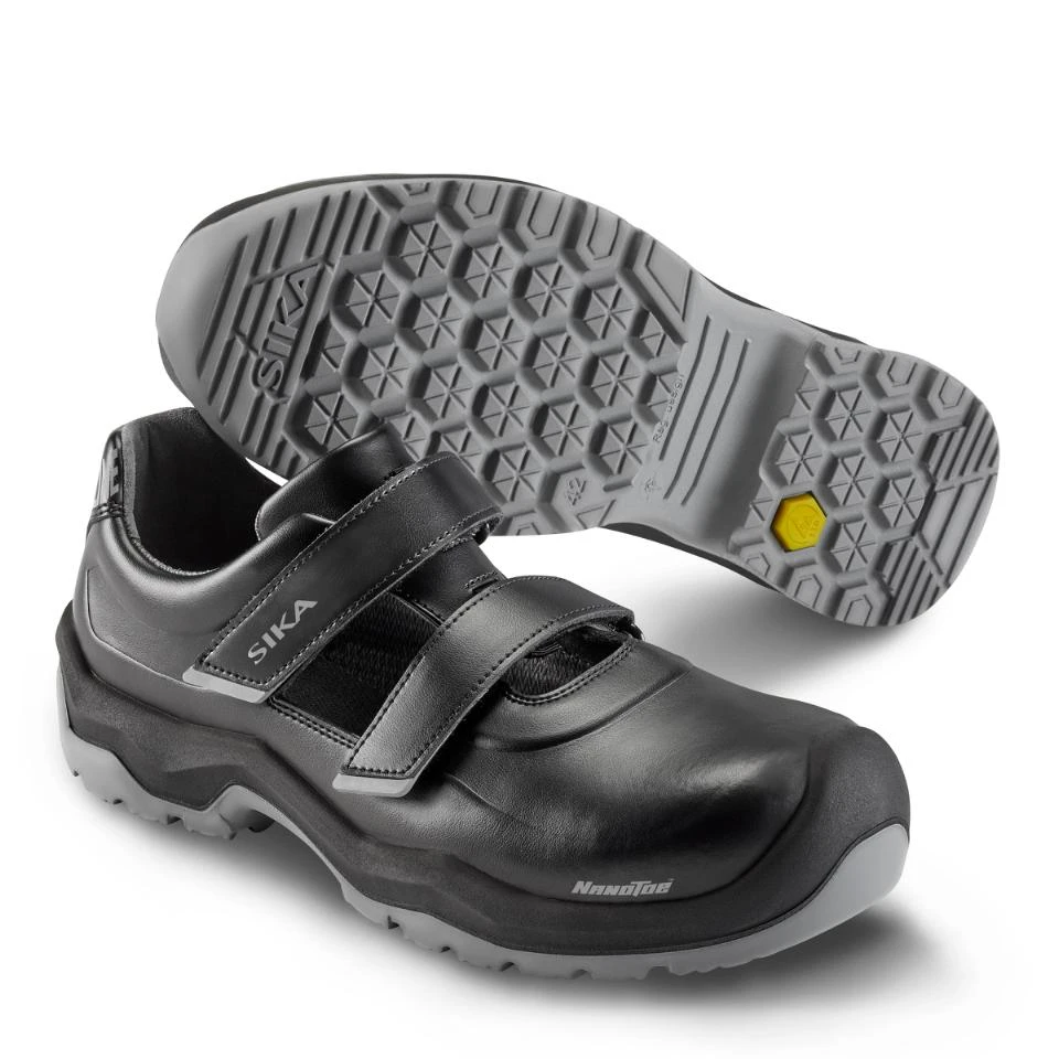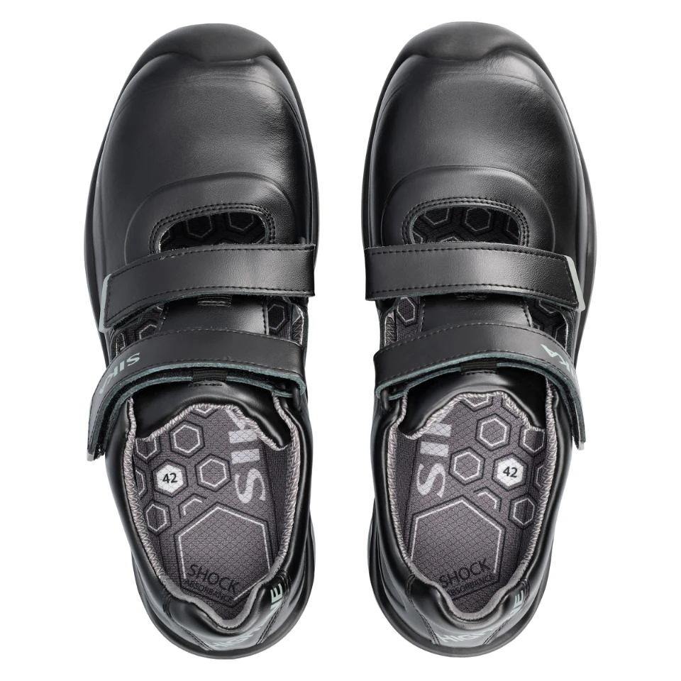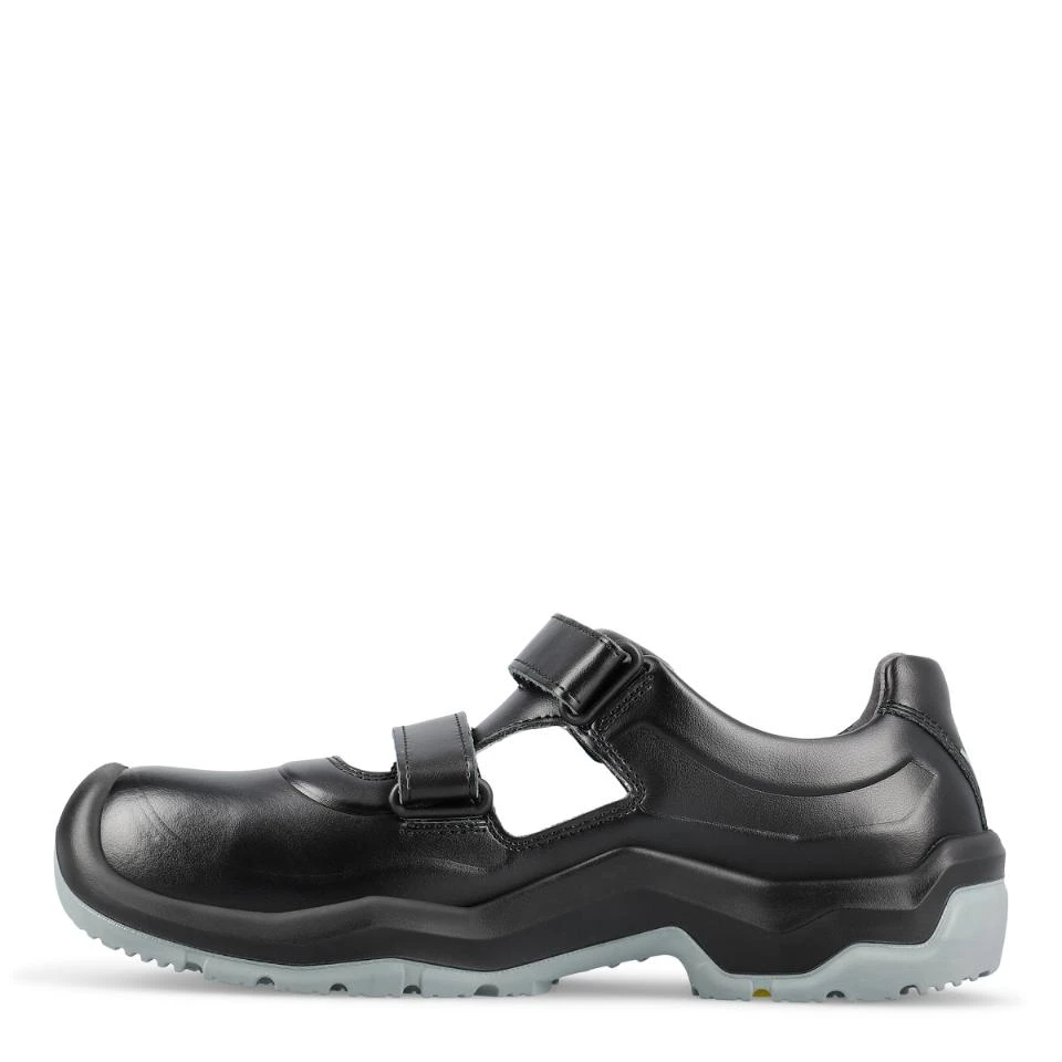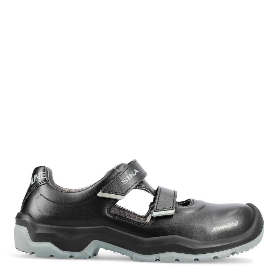 Extra halkhämmande sandal med justerbar kardborrestängning, avtagbar plös och Nanotoe™. Yttersulan har solid greppsula med stabiliserande gelänk som motverkar stukningar och fördelar trycket jämnt över hela sulan. Sandalen är gjord i ventilerande, slitstarkt och vattenavvisande Permair®-läder, medan innerfodret är av svettransporterande och snabbtorkande Sympatex Moisture-Tech® med extra förstärkning i hälen. Ventilerande, tvättbar och antibakteriell inläggssula. Extra tåförstärkning, metallfri, ESD-godkänd och PVC-fri. Med lätt, tunn och stark tåhätta av carbon nanotube-förstärkt glasfiber.