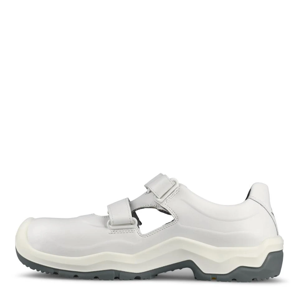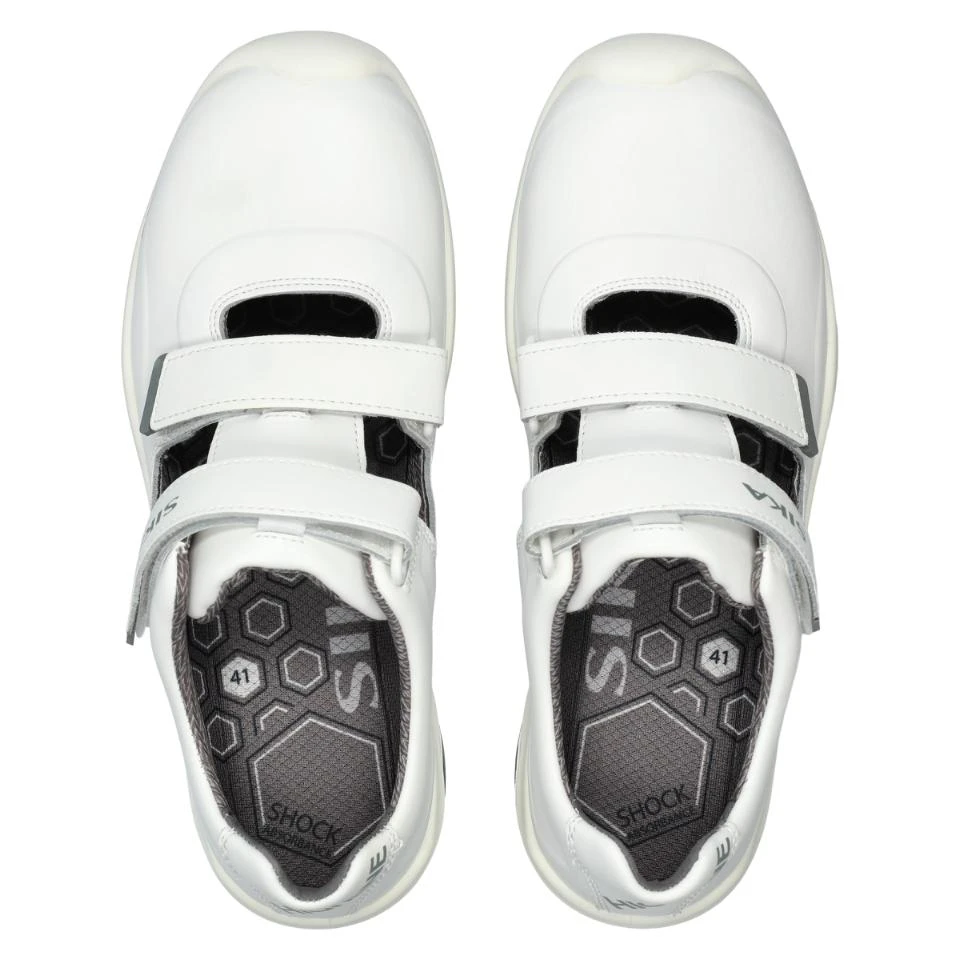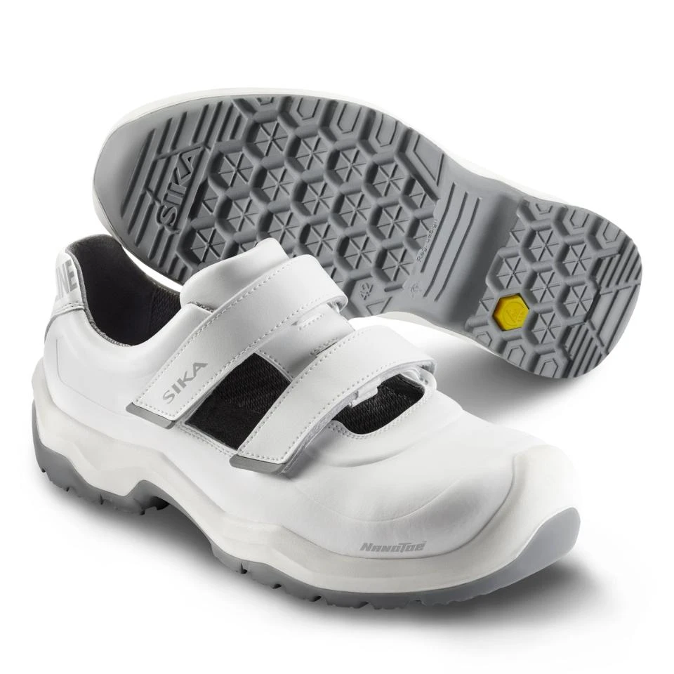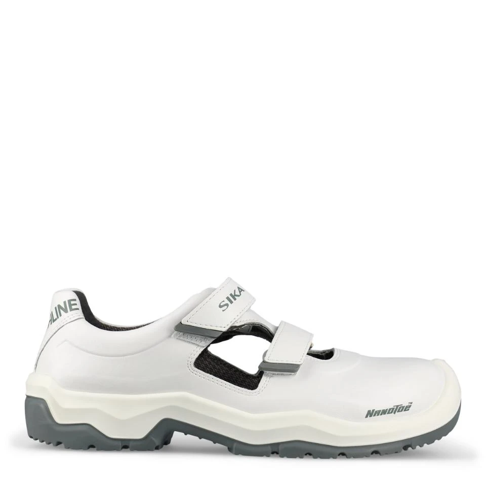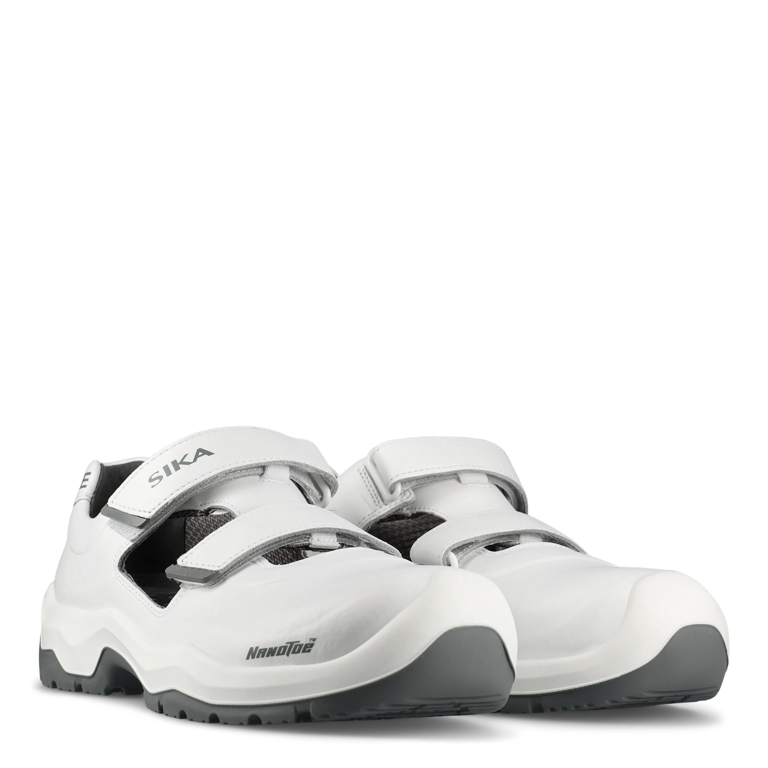 Extra halkhämmande sandal med justerbar kardborrestängning, avtagbar plös och Nanotoe™. Yttersulan har solid greppsula med stabiliserande gelänk som motverkar stukningar och fördelar trycket jämnt över hela sulan. Sandalen är gjord i ventilerande, slitstarkt och vattenavvisande Permair®-läder, medan innerfodret är av svettransporterande och snabbtorkande Sympatex Moisture-Tech® med extra förstärkning i hälen. Ventilerande, tvättbar och antibakteriell inläggssula. Extra tåförstärkning, metallfri, ESD-godkänd och PVC-fri. Med lätt, tunn och stark tåhätta av carbon nanotube-förstärkt glasfiber.