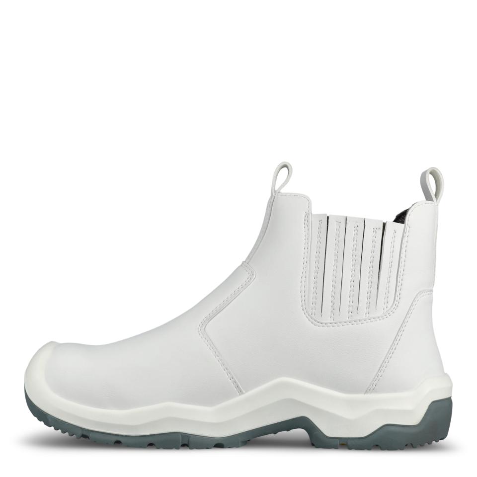 Chelseastövel med ovandel av slitstark och vattenavvisande mikrofiber som andas, med resår i skaftet – perfekt i slakterier och på andra platser där man arbetar med vassa knivar. Med sin glatta design är stöveln lätt att hålla ren. Lätt, tunn och stark tåhätta av carbon nanotube-förstärkt glasfiber. Extra halkhämmande yttersula med greppsula och stabiliserande gelänk som motverkar stukningar och fördelar trycket jämnt över hela sulan. Innerfoder av svettransporterande och snabbtorkande Sympatex Moisture-Tech®. ESD-godkänd och PVC-fri.