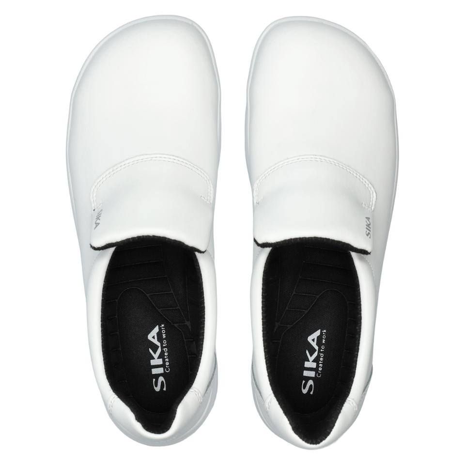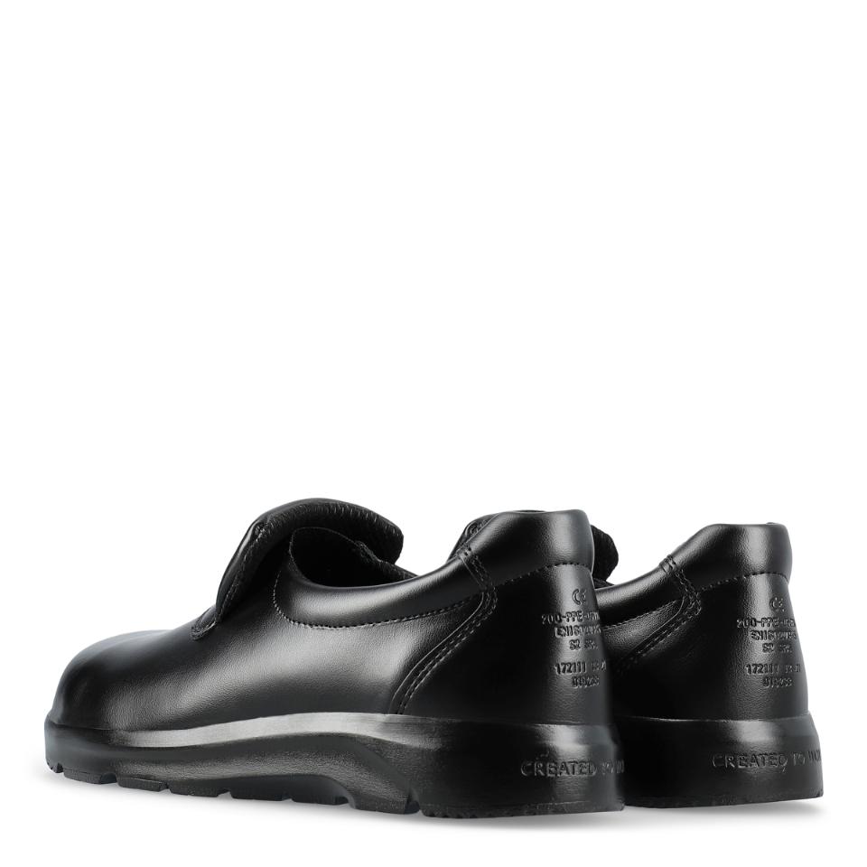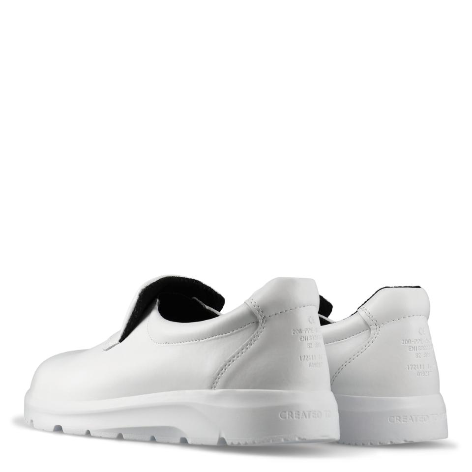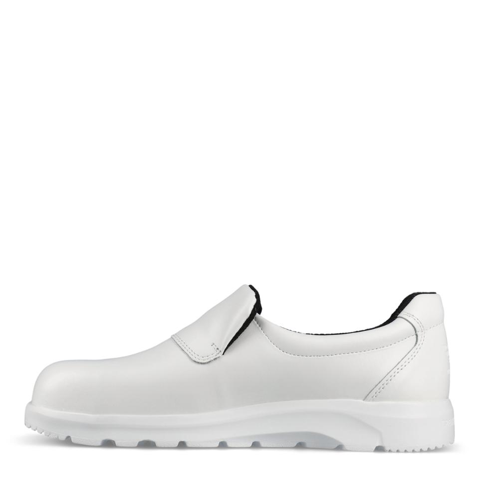 Lätta, bekväma och halkhämmanda loafers med tåhätta och av Permair® läder som andas. Lätt, flexibel och robust sulkonstruktion som samtidigt minimerar risken för vrickskador. Stötabsorberande inläggssula som andas i ett lätt och antibakteriellt material – kan tvättas i 30 °C. Innerfoder av svettabsorberande och slitstarkt material som andas. Finns i svart och vit.
