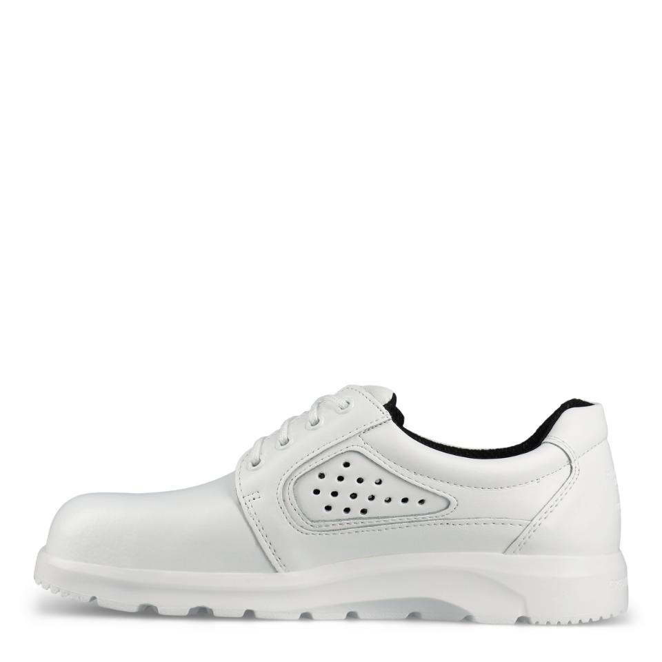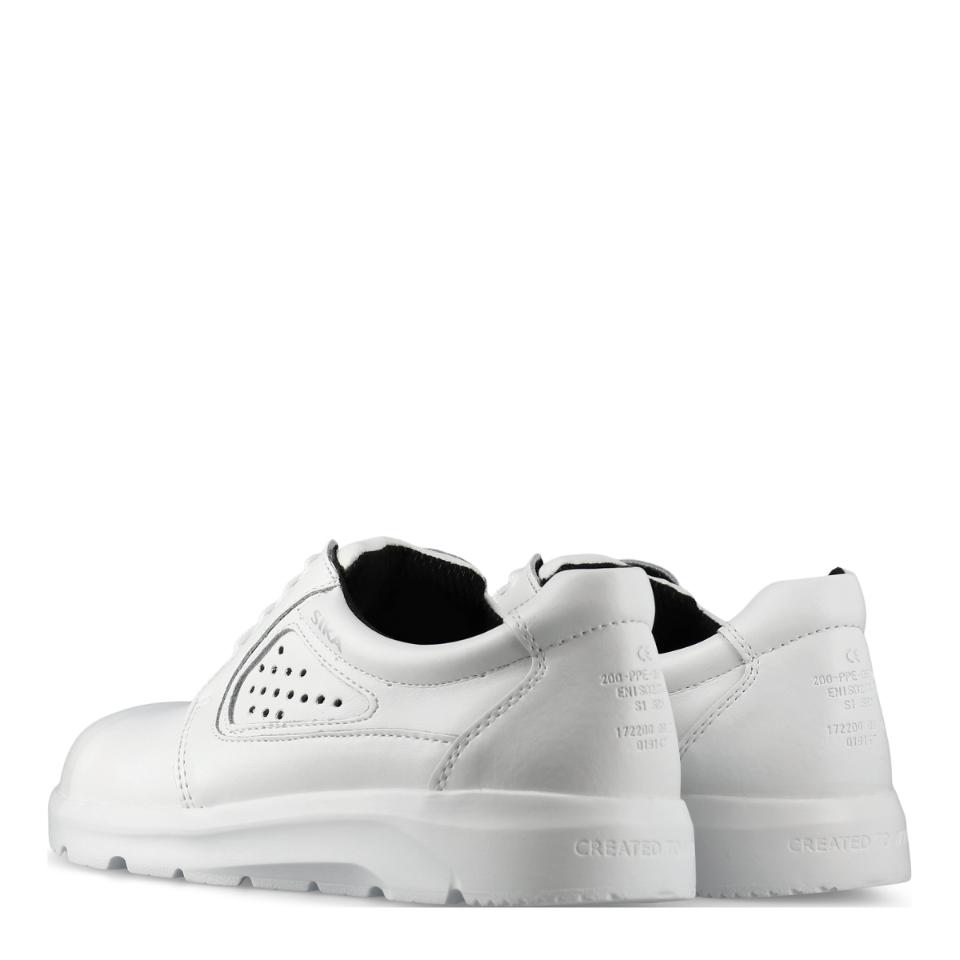 Lätt, bekväm och halkhämmande snörsko med tåhätta och av slitstarkt Permair® läder som andas. Lätt, flexibel och robust sulkonstruktion som samtidigt minimerar risken för vrickskador. Stötabsorberande inläggssula som andas i ett lätt och antibakteriellt material – kan tvättas i 30 °C. Innerfoder av svettabsorberande och slitstarkt material som andas. Finns i svart och vit.