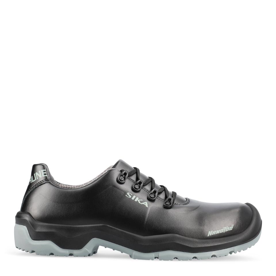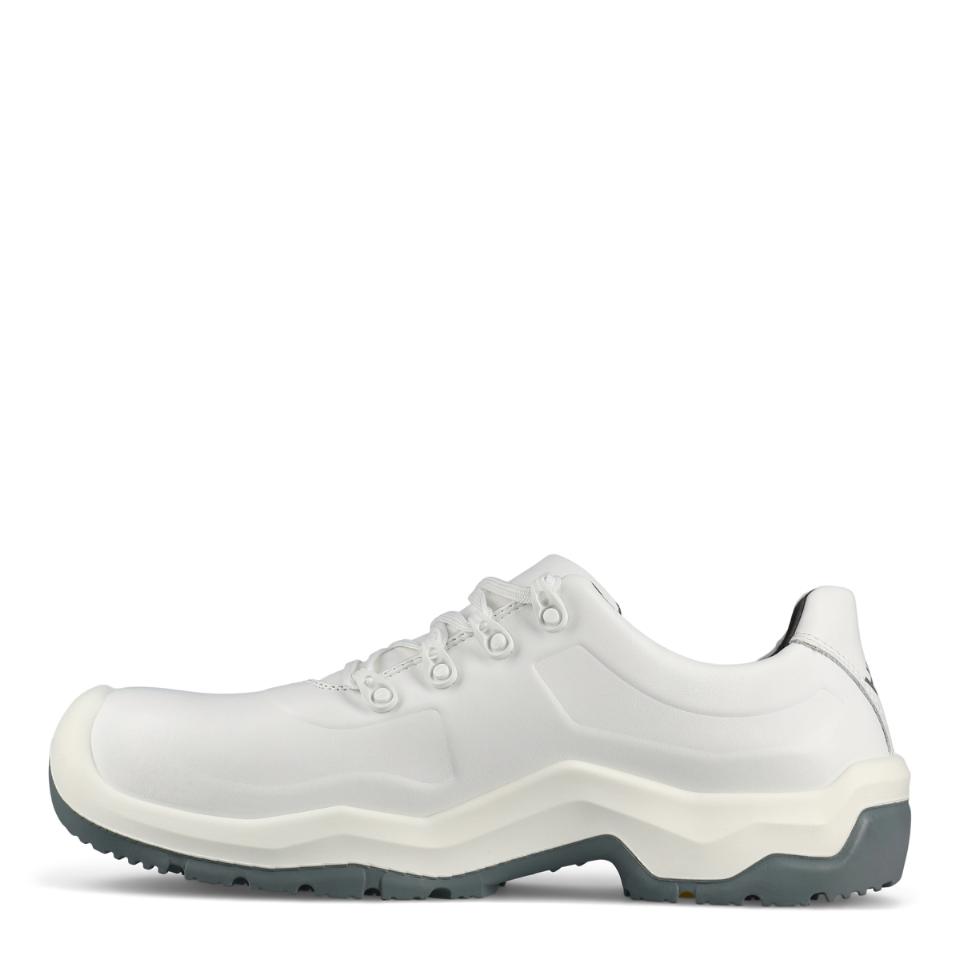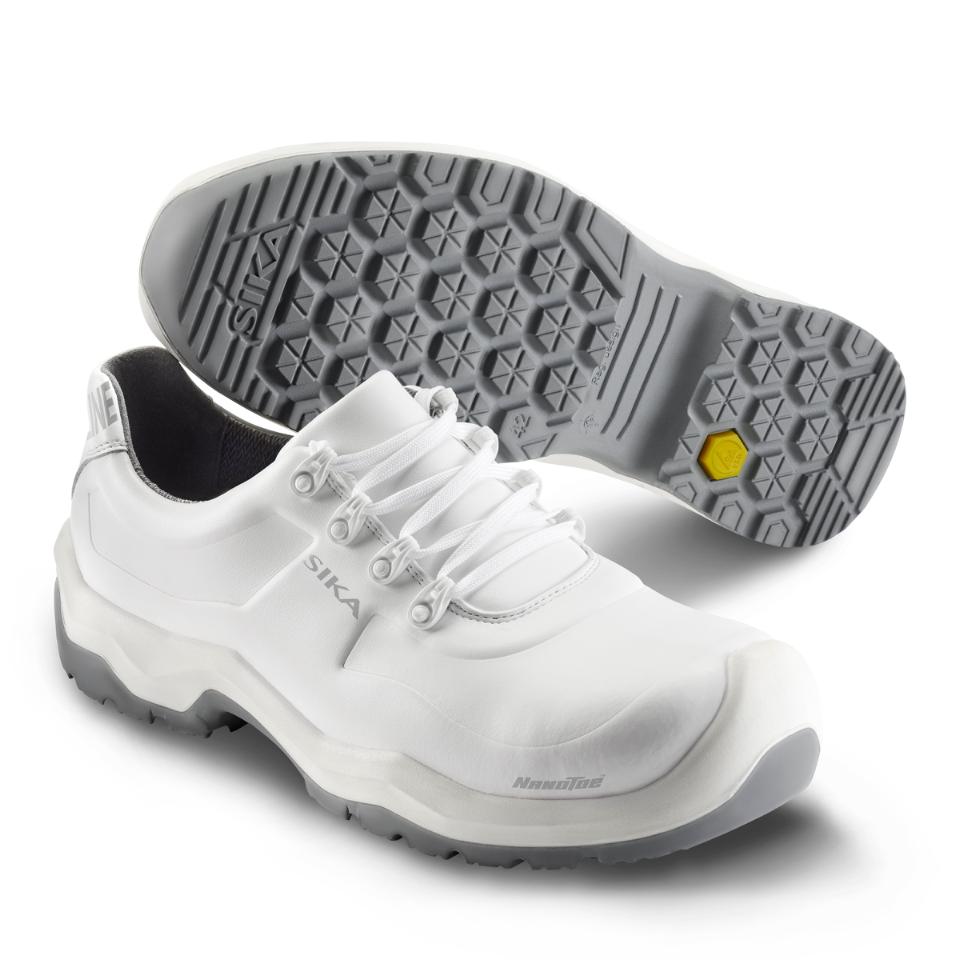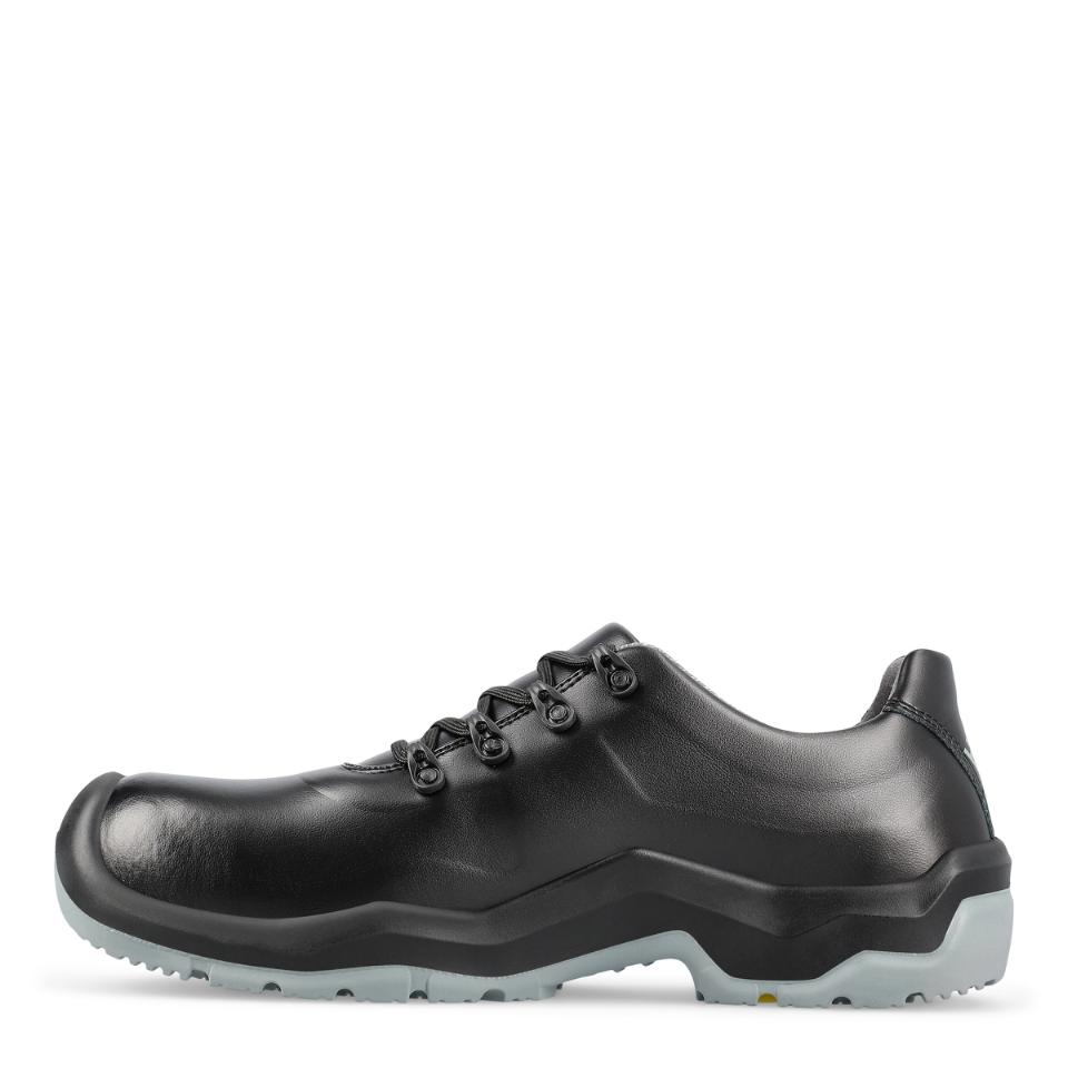 Extra halkhämmande sko som är lätt att rengöra, med Nanotoe™ och elastiskt skosnöre som snabbt och enkelt dras åt i ett drag. Yttersulan har solid greppsula med stabiliserande gelänk som motverkar stukningar och fördelar trycket jämnt över hela sulan. Skon är gjord i ventilerande, slitstarkt och vattenavvisande Permair®-läder, medan innerfodret är av svettransporterande och snabbtorkande Sympatex Moisture-Tech® med extra förstärkning i hälen. Ventilerande, tvättbar och antibakteriell inläggssula. Extra tåförstärkning, metallfri, ESD-godkänd och PVC-fri. Med lätt, tunn och stark tåhätta av carbon nanotube-förstärkt glasfiber.