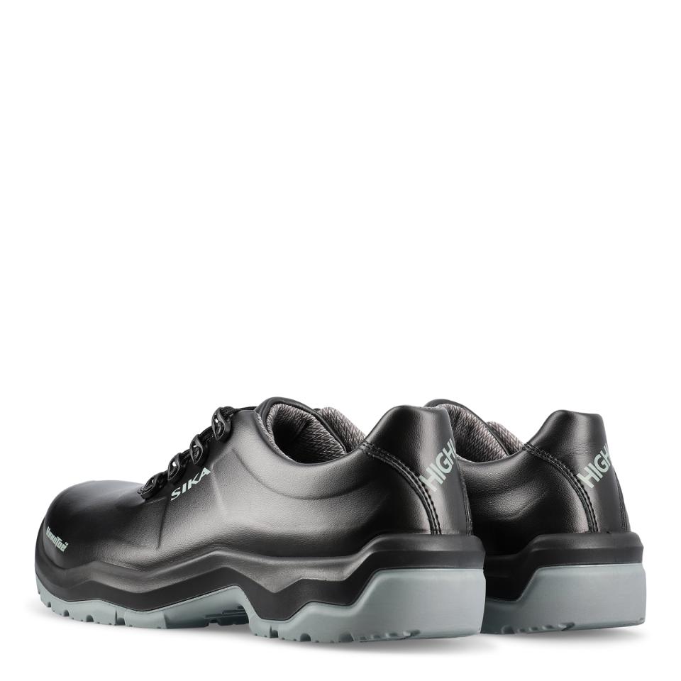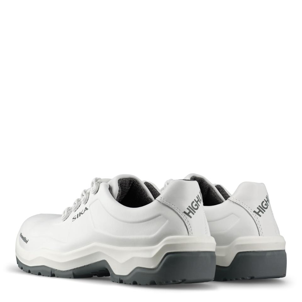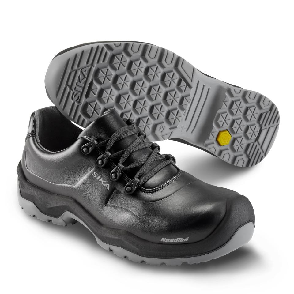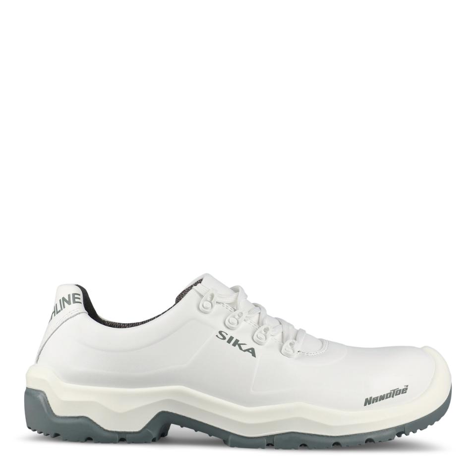 Extra halkhämmande sko som är lätt att rengöra, med Nanotoe™ och elastiskt skosnöre som snabbt och enkelt dras åt i ett drag. Yttersulan har solid greppsula med stabiliserande gelänk som motverkar stukningar och fördelar trycket jämnt över hela sulan. Skon är gjord i ventilerande, slitstarkt och vattenavvisande Permair®-läder, medan innerfodret är av svettransporterande och snabbtorkande Sympatex Moisture-Tech® med extra förstärkning i hälen. Ventilerande, tvättbar och antibakteriell inläggssula. Extra tåförstärkning, metallfri, ESD-godkänd och PVC-fri. Med lätt, tunn och stark tåhätta av carbon nanotube-förstärkt glasfiber.